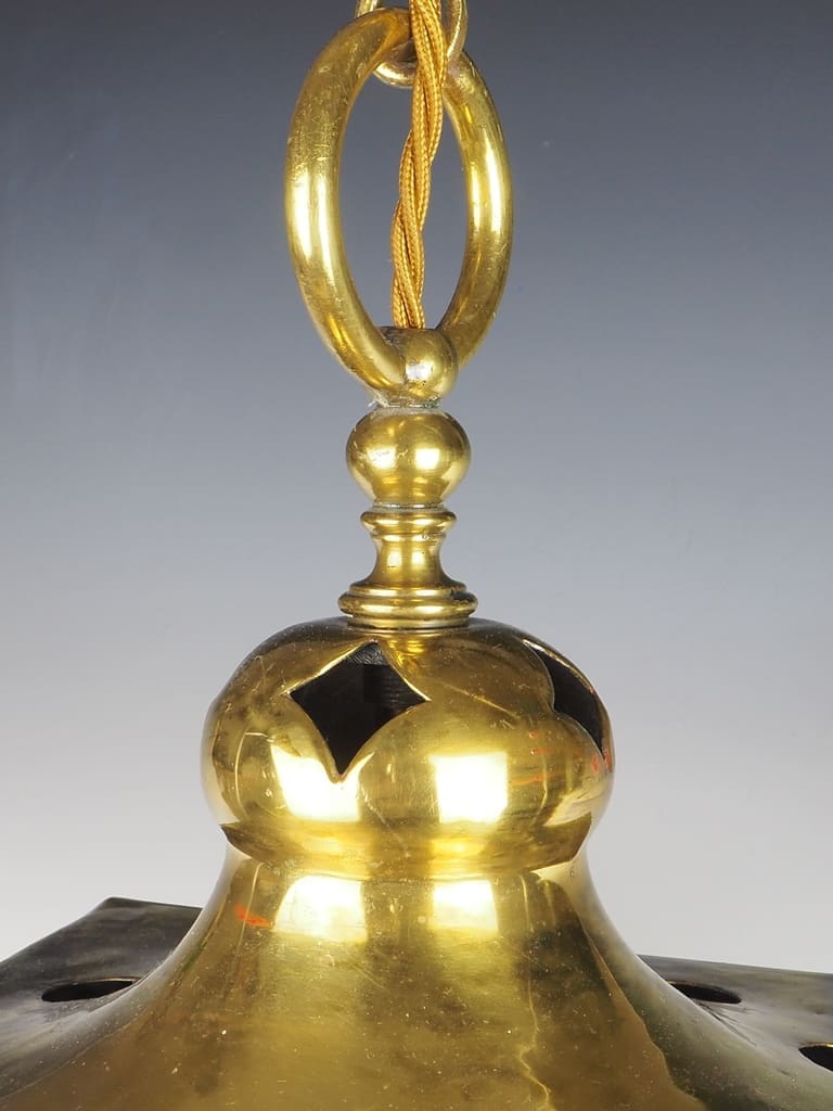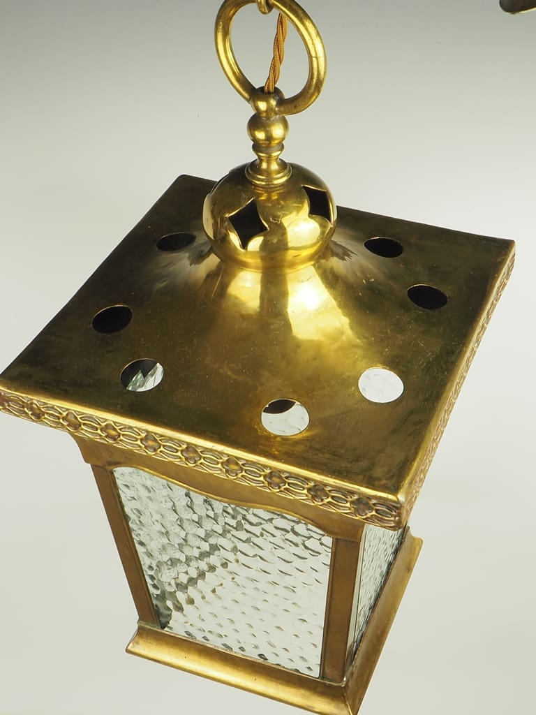 Arts & Crafts Brass Hall Lantern, a four-sided fixture that seamlessly blends functionality with artistic design.