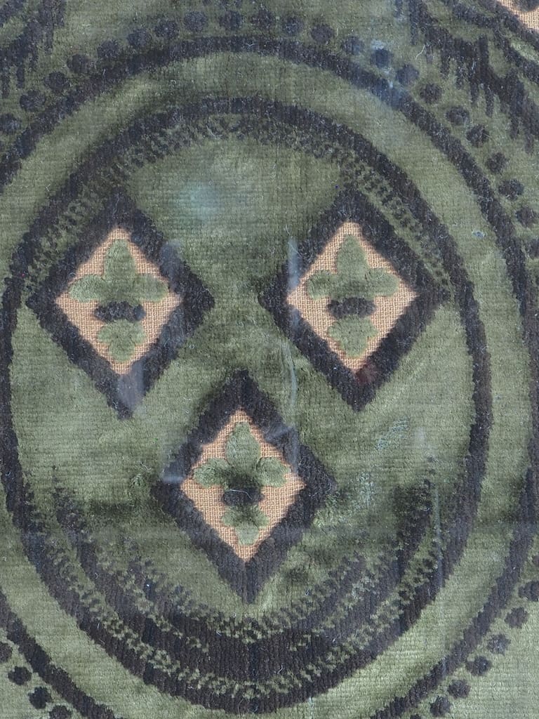 Subtle light wear is visible across the velvet, particularly in areas where the fabric was folded in the past. These folds have created slight creases but do not detract from the overall appearance.