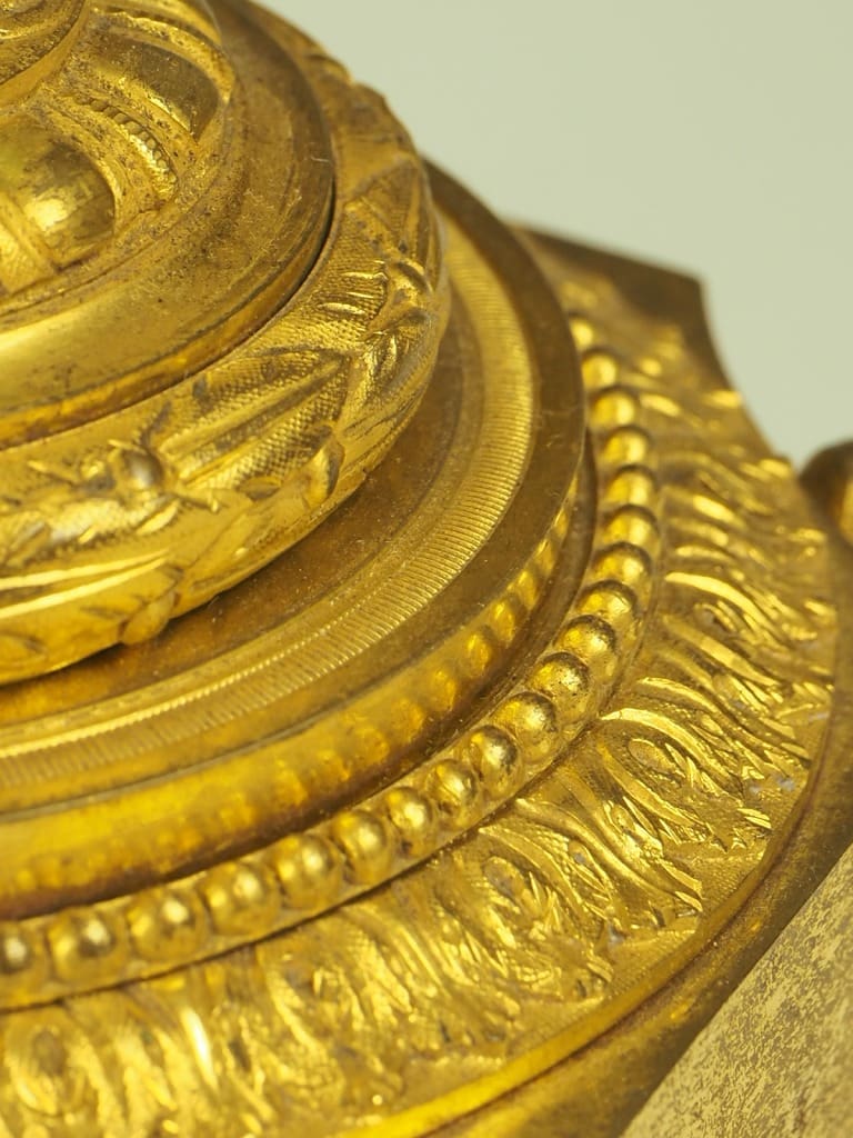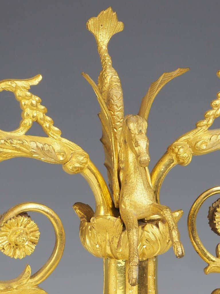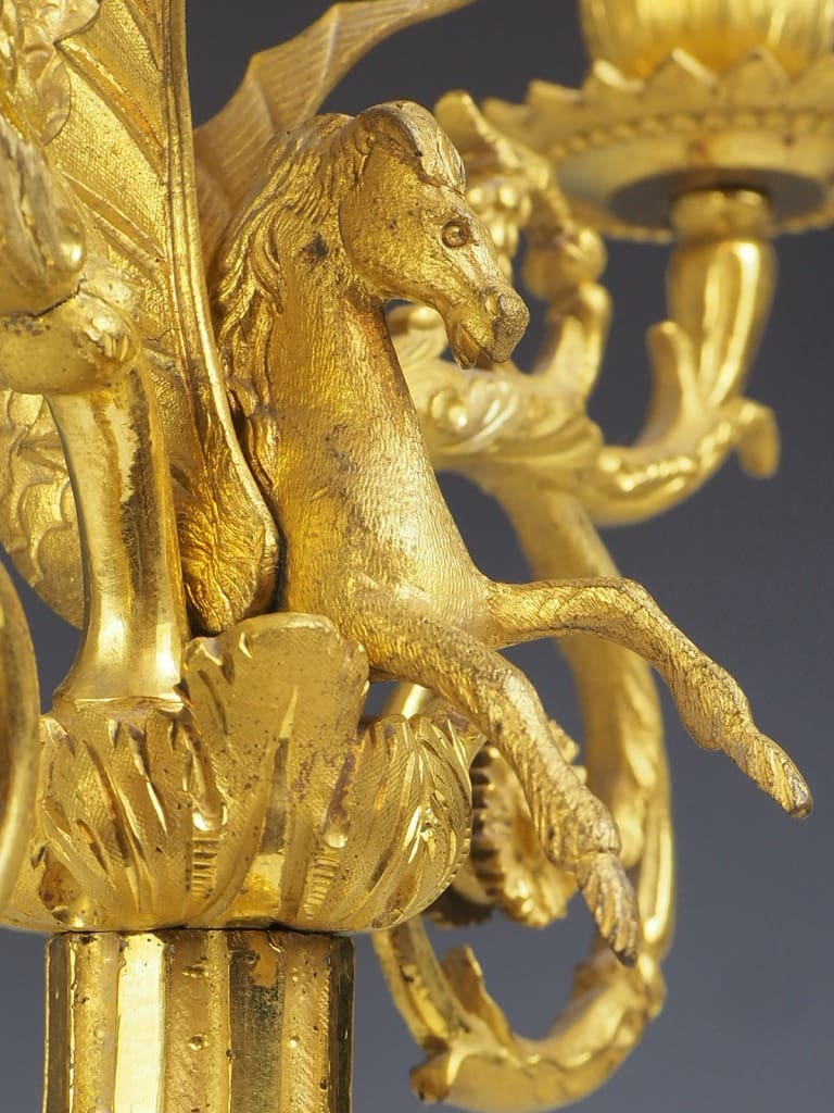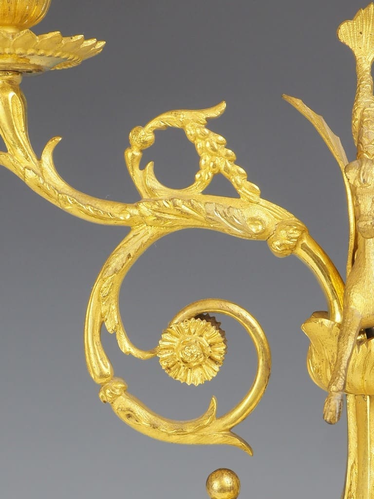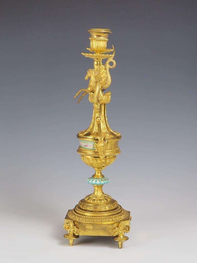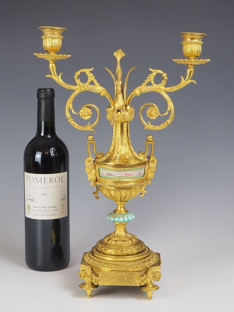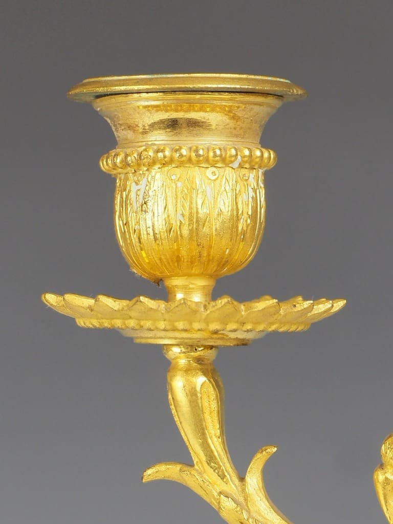 Made from gilt bronze ormolu, this candelabra not only serves as a functional candle holder but also doubles as a stunning decorative accent that will effortlessly enhance the ambiance of any room.