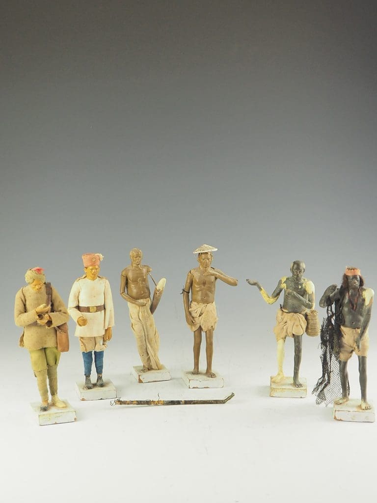 Each figure representing a trade or occupation, the bodies of clay, clothed in cloth or linen, ten raised on terracotta bases