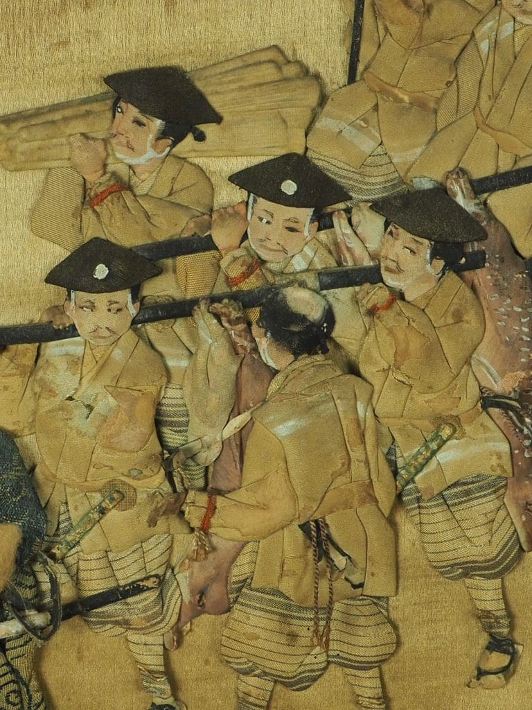 Edo Period Japanese Screen Collage Artwork on silk is a remarkable piece of art that beautifully encapsulates the essence of traditional Japanese culture. Crafted during the Edo Period, this artwork showcases the meticulous attention to detail and artistic mastery of the era. The stunning collage design on silk depicts various scenes from Japanese folklore, history, and nature, creating a visually captivating composition. Stamped by the artist, this screen carries the mark of authenticity and adds to its value as a collectible item.