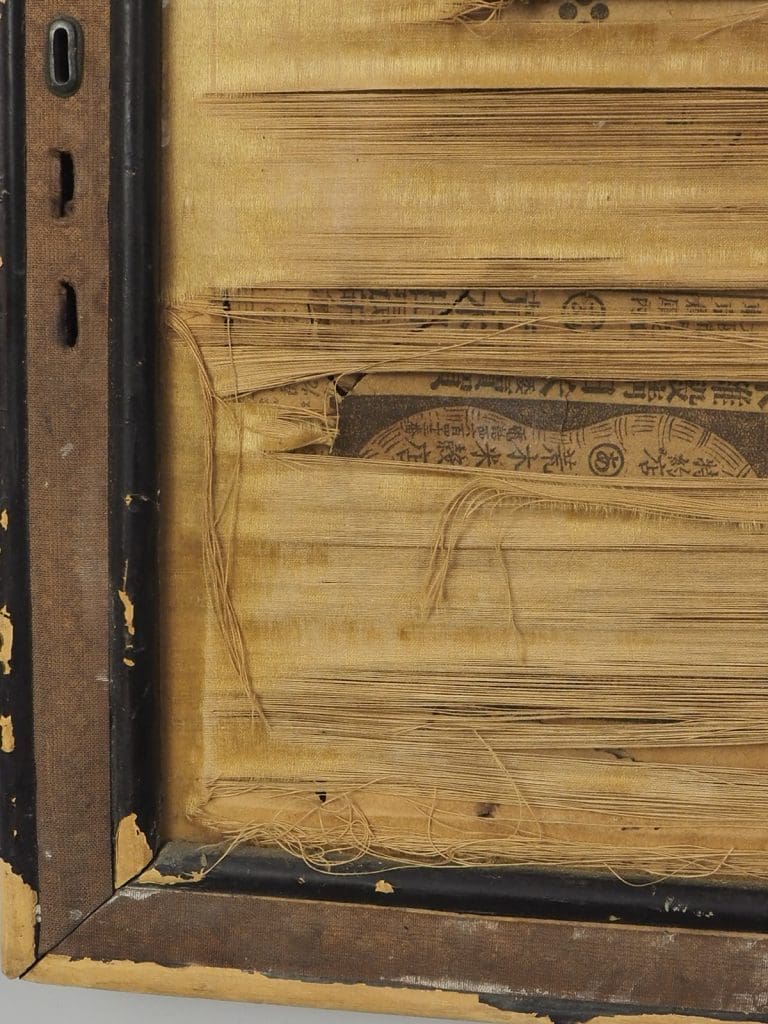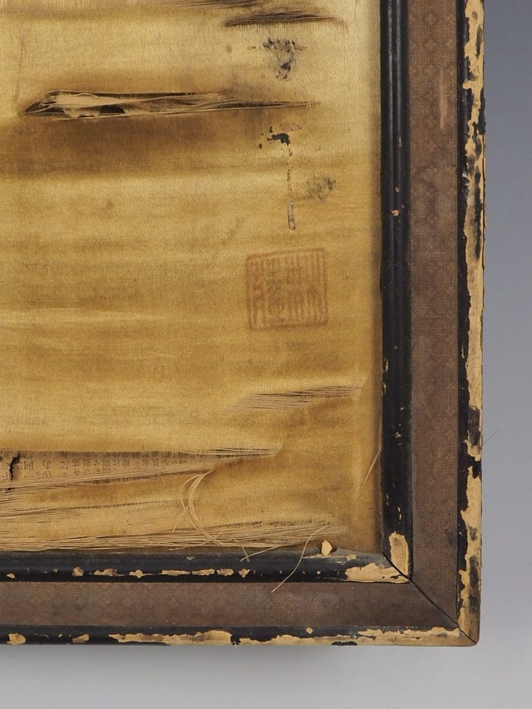 While the artwork itself is a masterpiece, it is important to note that both the silk and frame are in need of renovation. The delicate silk fabric has experienced some wear and tear over the years, which can be expected from a piece of this age. However, with proper restoration, the silk can regain vibrancy and luster, allowing the artwork to shine once again. Similarly, the frame may require some attention to restore its structural integrity and enhance its overall appearance.