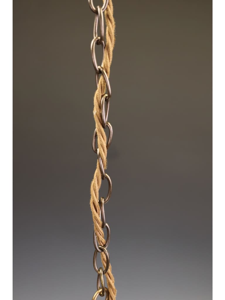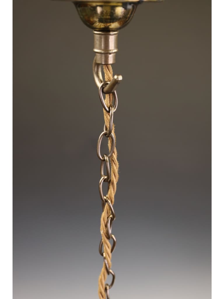Retaining its original brass gallery and suspension chain, this piece remains untouched and authentic, a testament to the quality of workmanship from the interwar period. The gallery has developed a pleasing, mellow patina consistent with age, adding further charm and character.