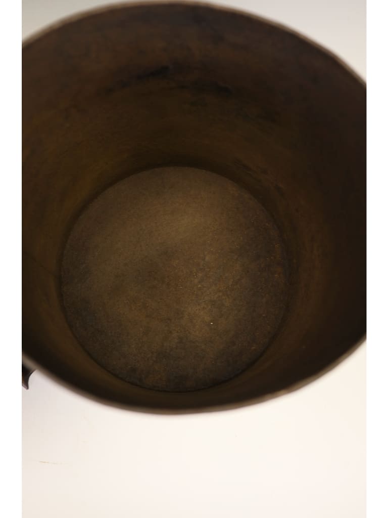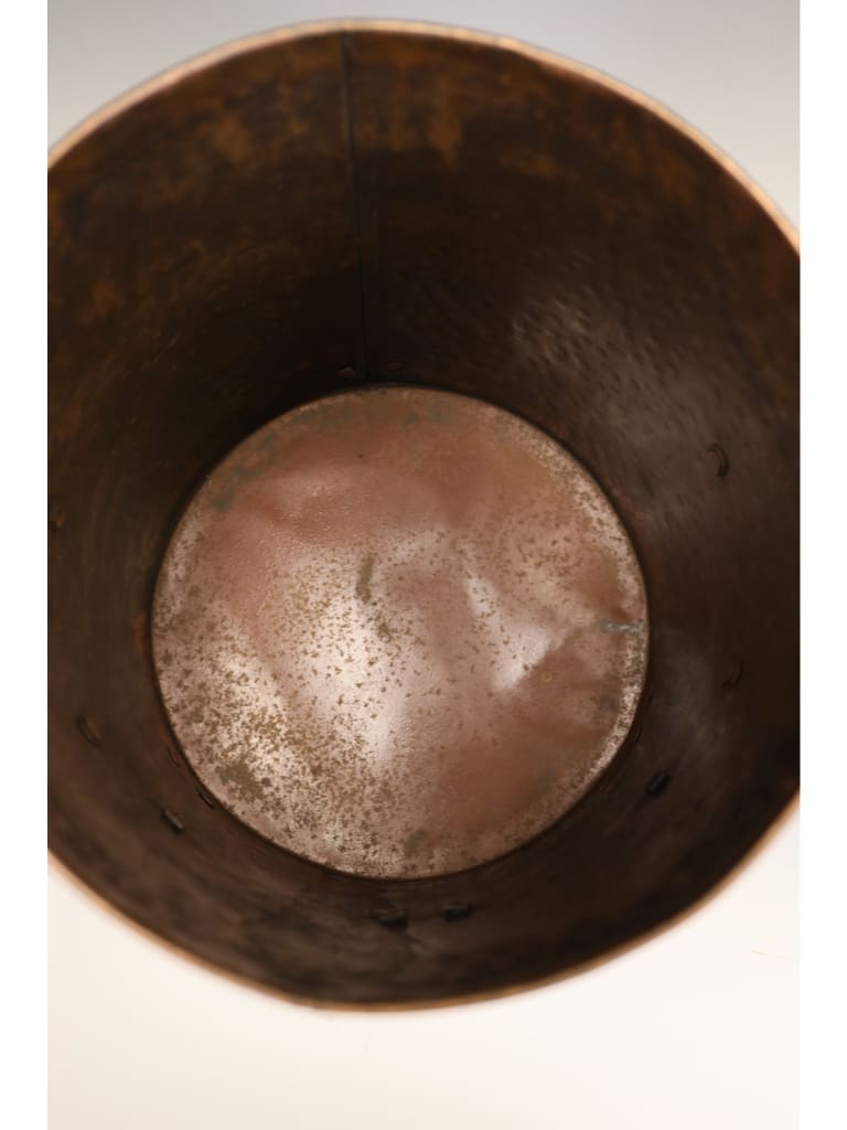 The bucket comes complete with its original removable black metal liner. This liner is essential for practical use, protecting the copper body from the abrasive coal and allowing for easy transport and cleaning of the fuel.