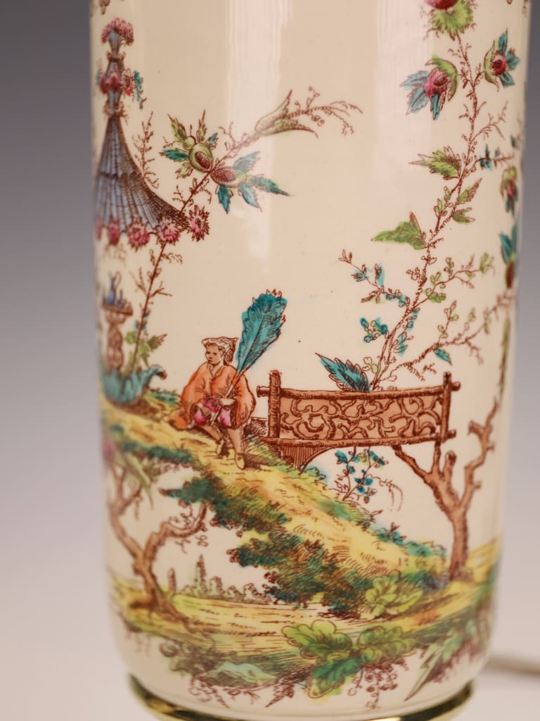 The Lunéville faience works, operated by Keller & Guérin, played a pivotal role in the revival of French decorative ceramics during the late 19th century. Drawing inspiration from Rococo and Orientalist sources, their wares were highly prized both in France and internationally. These lamps reflect that period’s fascination with exoticism, craftsmanship and refined domestic luxury.