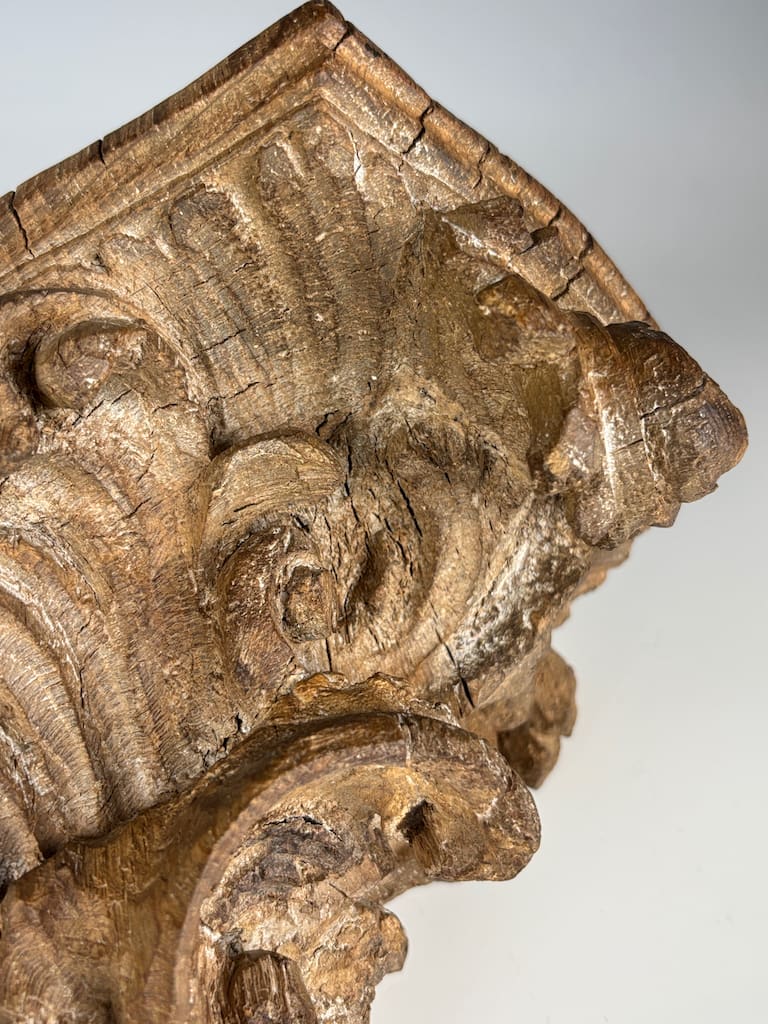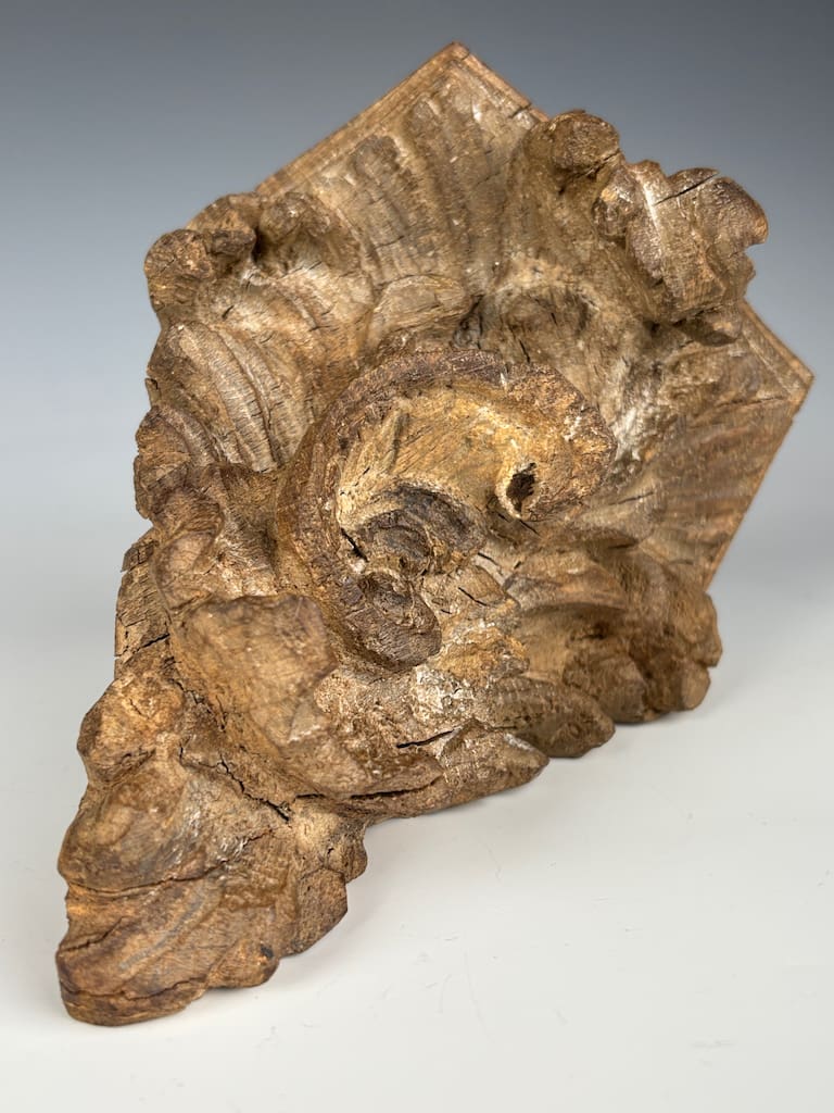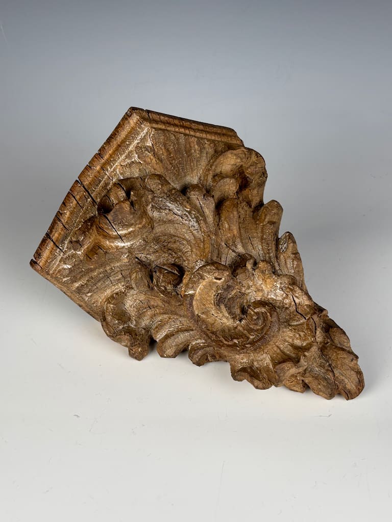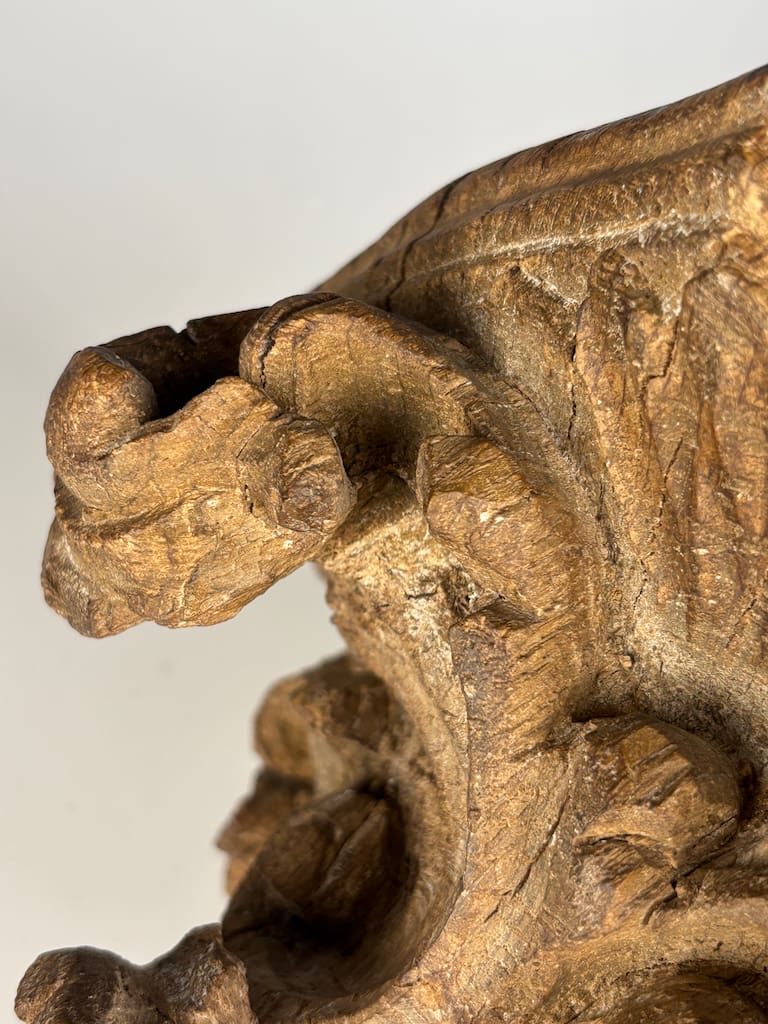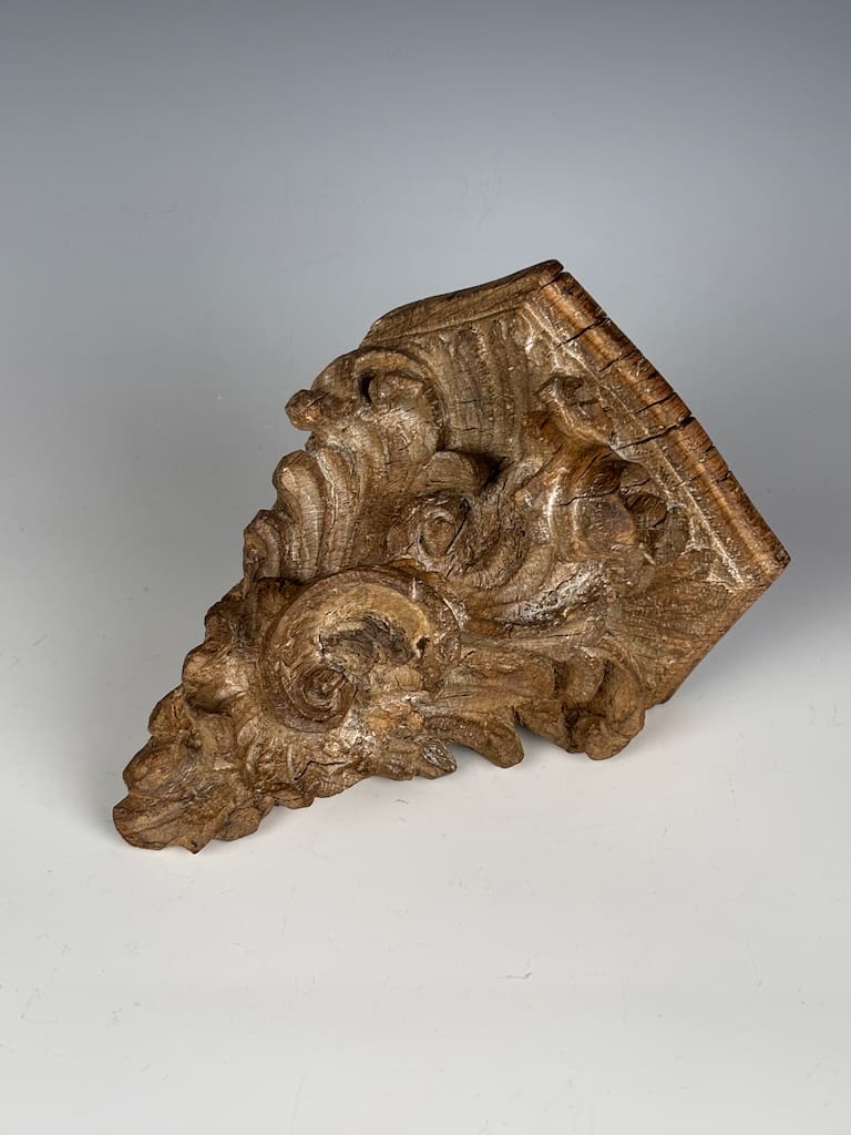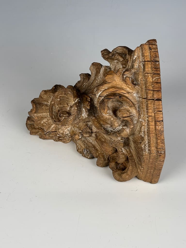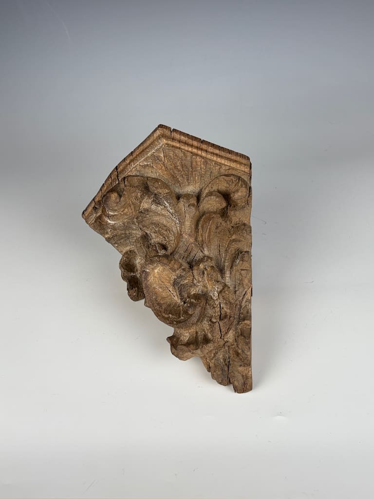 A truly captivating and rare piece of architectural sculpture, this finely carved limewood corner shelf is a superb example of the exuberant Rococo style as interpreted by master craftsmen in Flanders. Dating from the mid-18th century, this piece is a testament to the extraordinary skill and artistry of Flemish woodcarvers, who were renowned for their dynamic and expressive work.