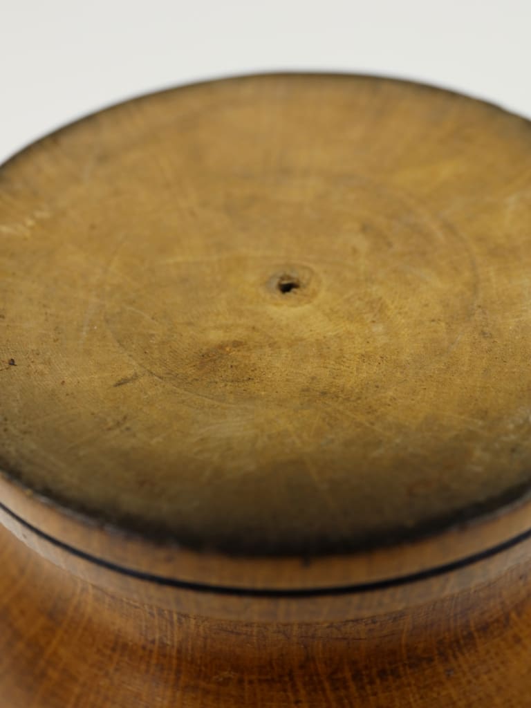 While treen of this nature is rarely signed, pieces of this caliber were typically produced by specialised master turners in major English urban centers like London or Birmingham. In the early 19th century, boxwood was the material of choice for "clean" medicinal use because of its incredible density and lack of resinous odor, which prevented cross-contamination between different medicinal compounds or spices.
