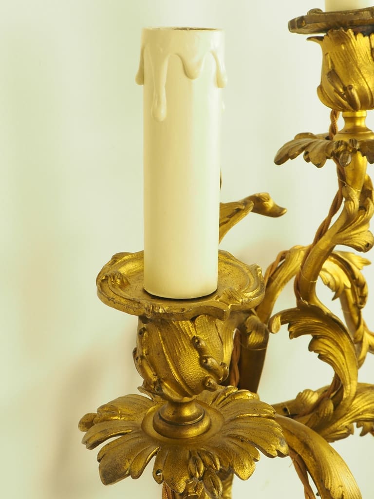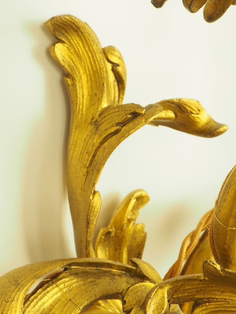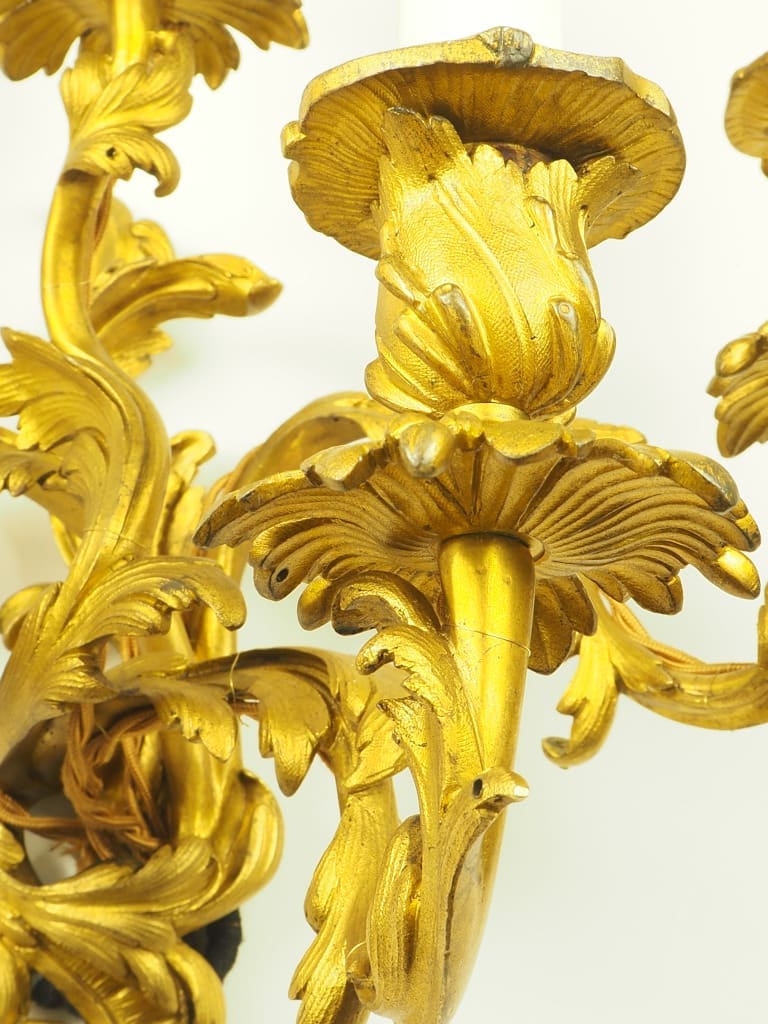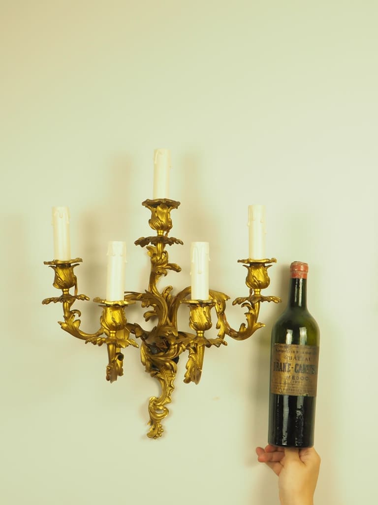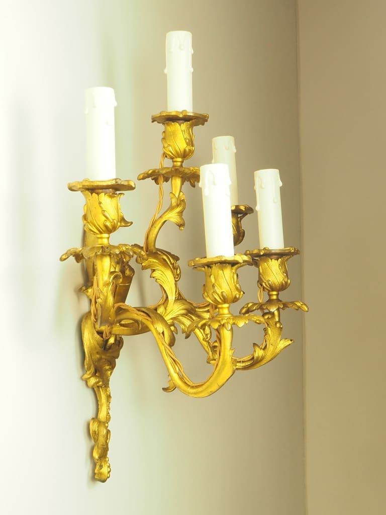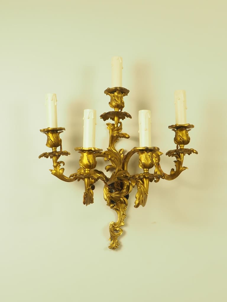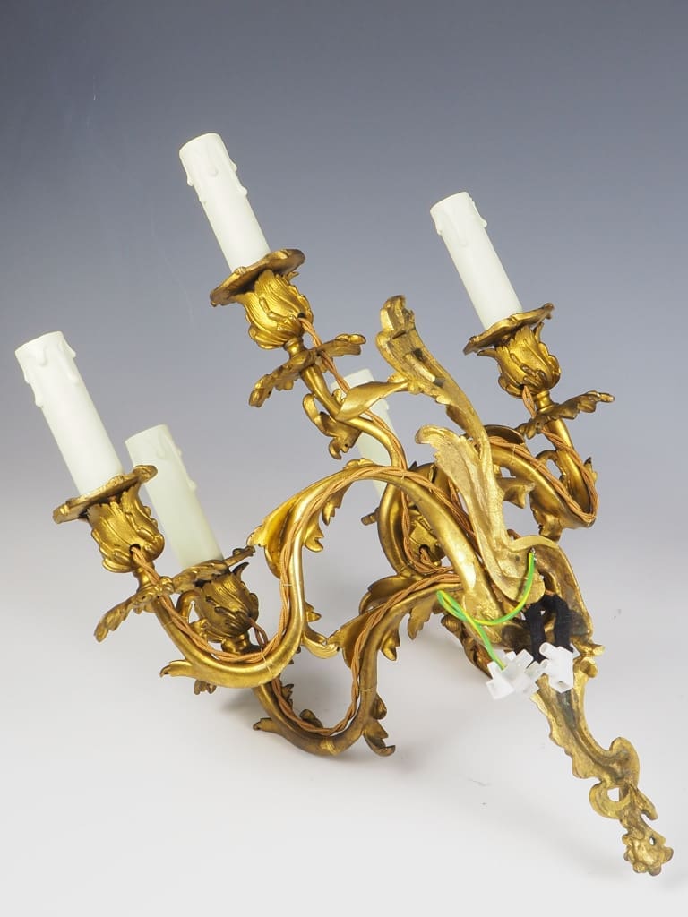 Exquisite pair of French Ormolu Rococo 5 Arm Gilt Bronze Wall Lights