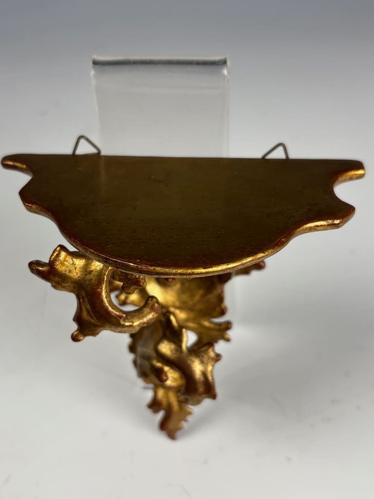 This giltwood shelf is adorned with exquisitely carved acanthus leaves—a motif celebrated for centuries in classical architecture. The rich golden finish enhances the intricate detailing, adding a luxurious touch to any space.