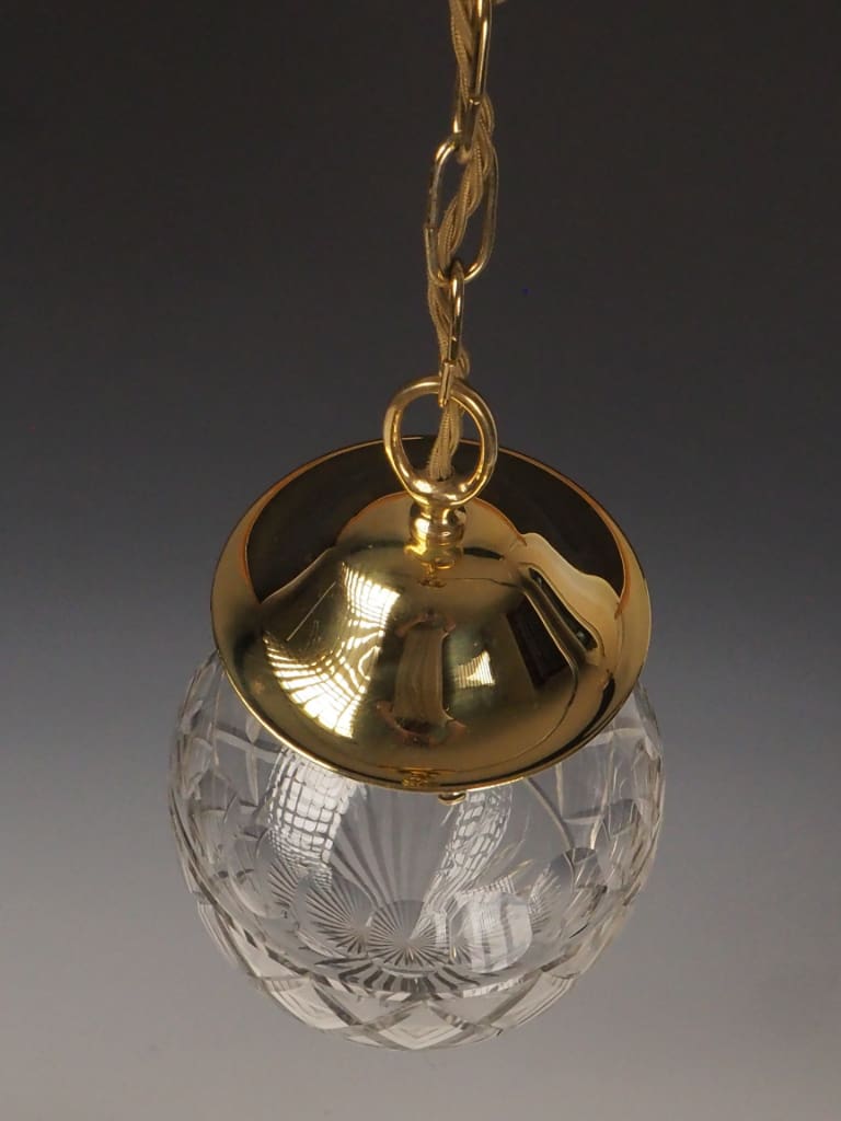 This antique pendant light is in excellent condition. It has been thoroughly cleaned, professionally rewired, and tested to meet current UK electrical safety standards. The large cut glass shade is in superb condition with no cracks or significant damage, showing only minor wear consistent with age. Fully functional and ready for installation, this piece is both safe and stylish—perfect for modern use while retaining its historical charm.