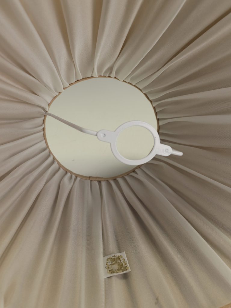 Each lampshade is individually handmade, and as such may show slight, natural variations in the gathering, stitching, and fabric tension.