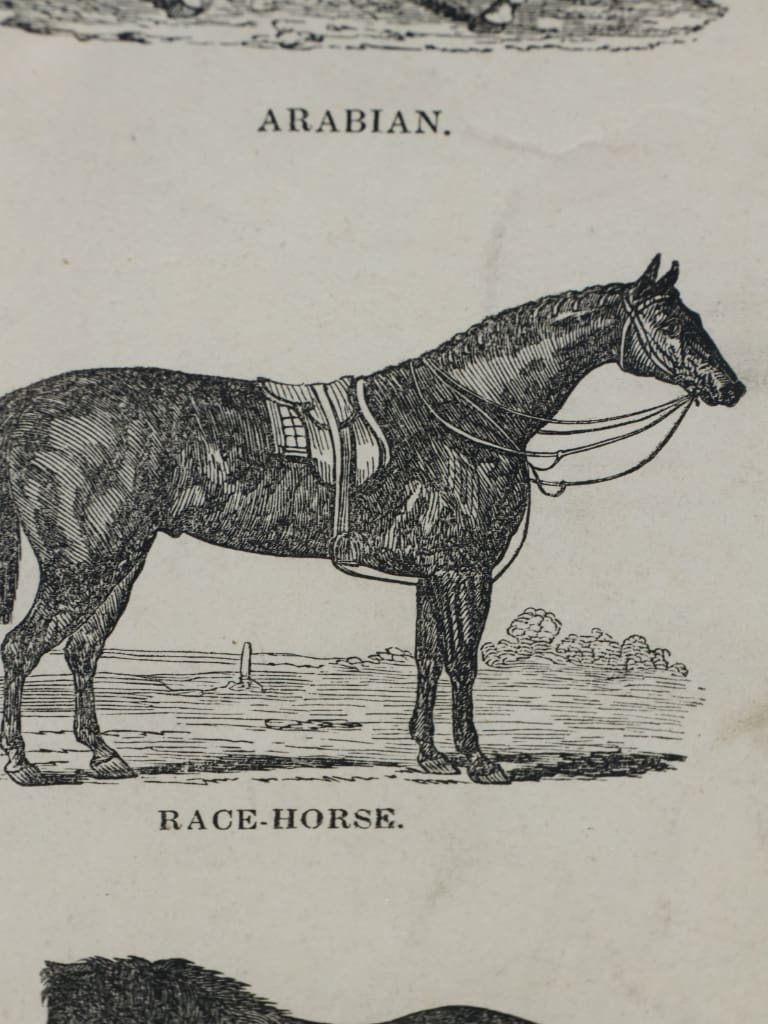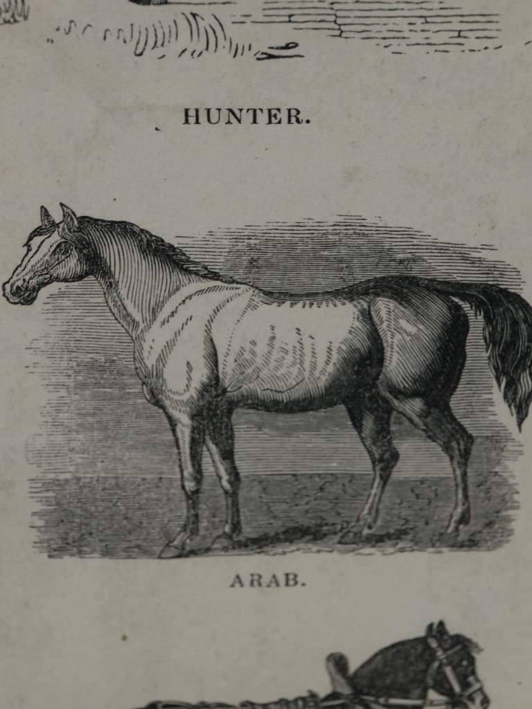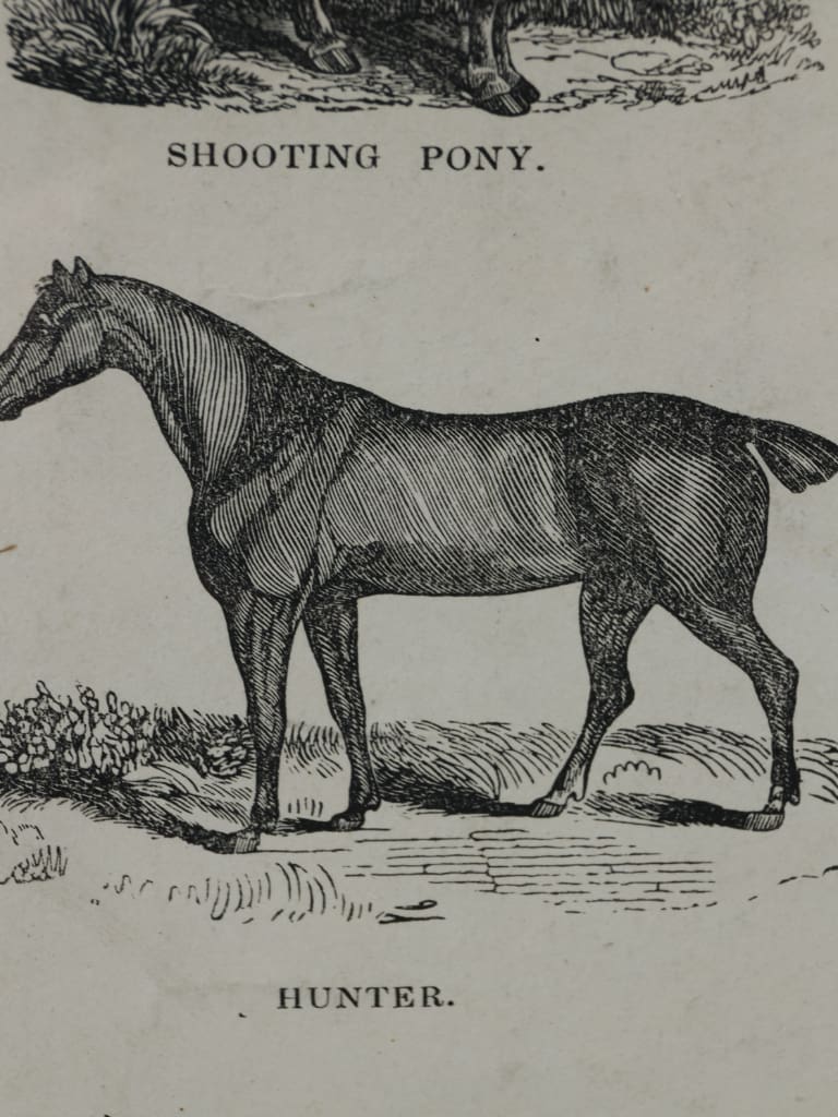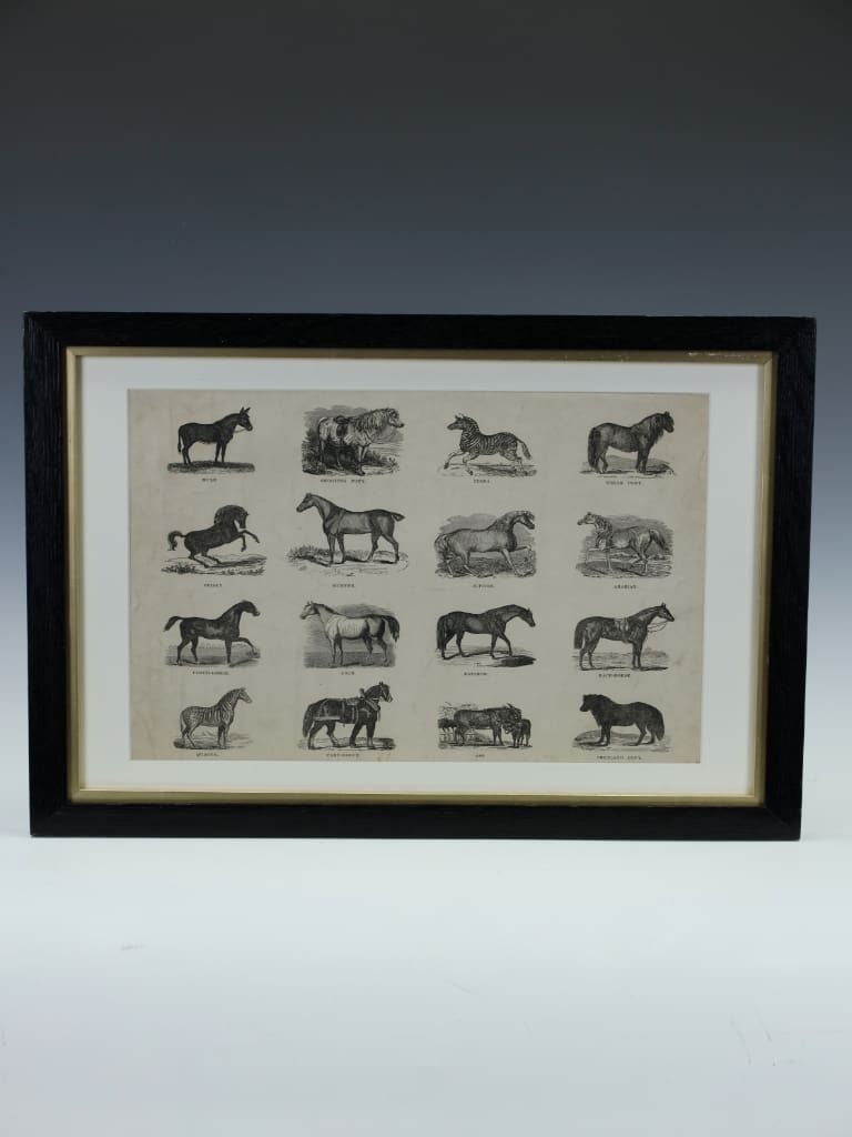 This is an original mid-Victorian wood-engraved print, representing a rare survival of 19th-century. Produced circa 1850 by the notable Leeds and London firm Webb & Millington, this work captures a "string" of 16 individual horse breeds.