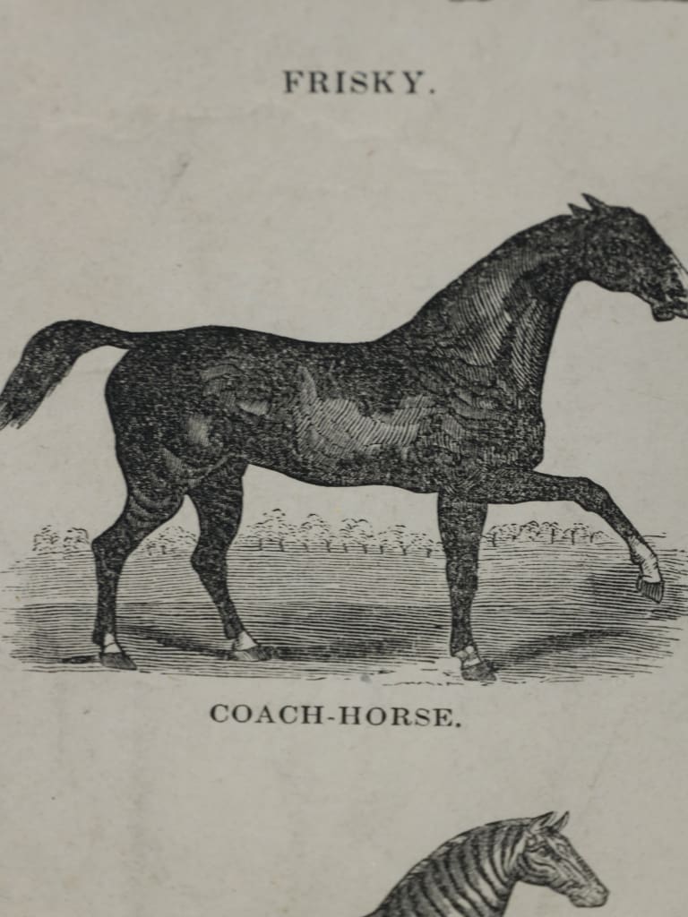 Webb & Millington were prolific publishers of "improving" prints designed for the Victorian middle class. While a specific woodcut of "16 horses" is not always listed in their standard commercial catalogues, the firm frequently published natural history prints and educational posters featuring animals. A print depicting 16 horse varieties aligns perfectly with their "Pictorial Lessons" or "Animal Alphabets" series intended for schoolrooms or nurseries in the mid-19th century.
