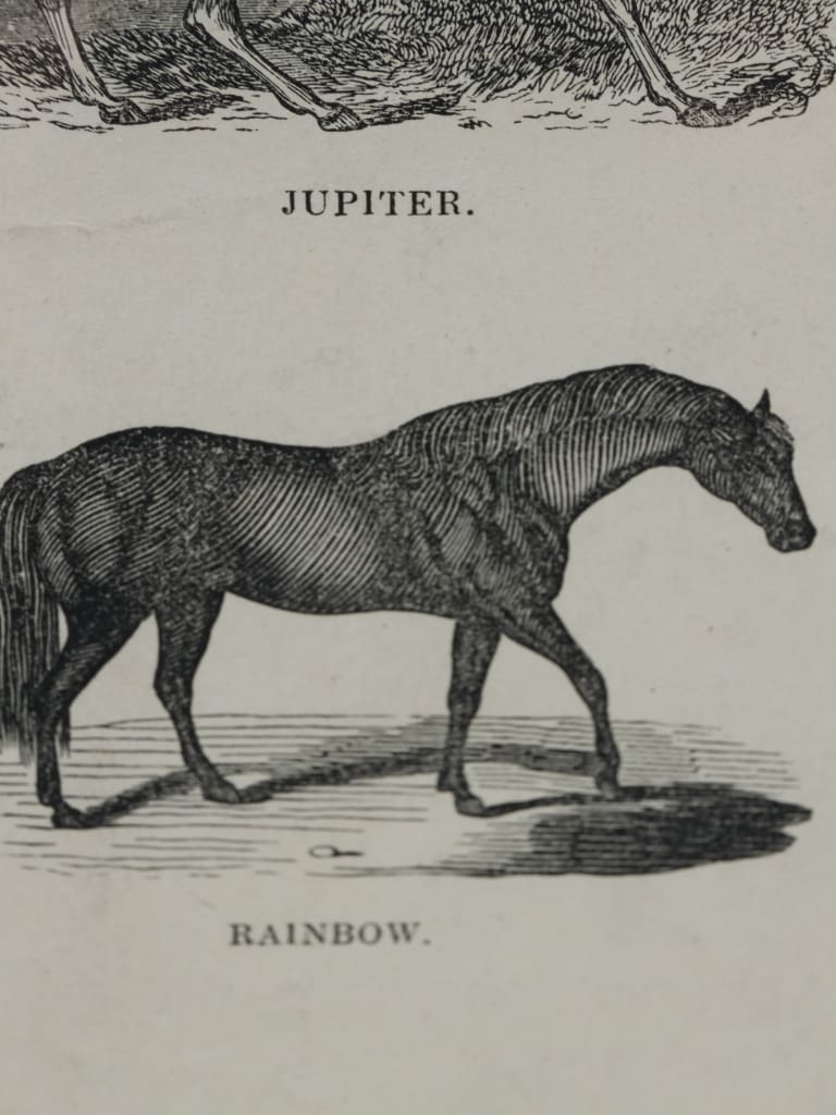 The work is rendered with the spirited character typical of mid-Victorian British printmaking. The fine wood-engraving technique allows for a remarkable density of detail, capturing the distinct musculature of the horses and the specific period costumes of their riders and handlers. This particular example showcases the vibrant original hand-coloured palette, a feature that made these panoramas highly prized for both decorative and educational use.