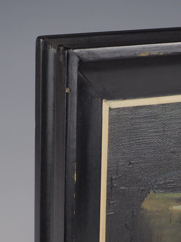 Description Early 20th Century Original Oil Painting Kitchen Still Life Moody setting, complete with black frame Signed by F. Tondeleir