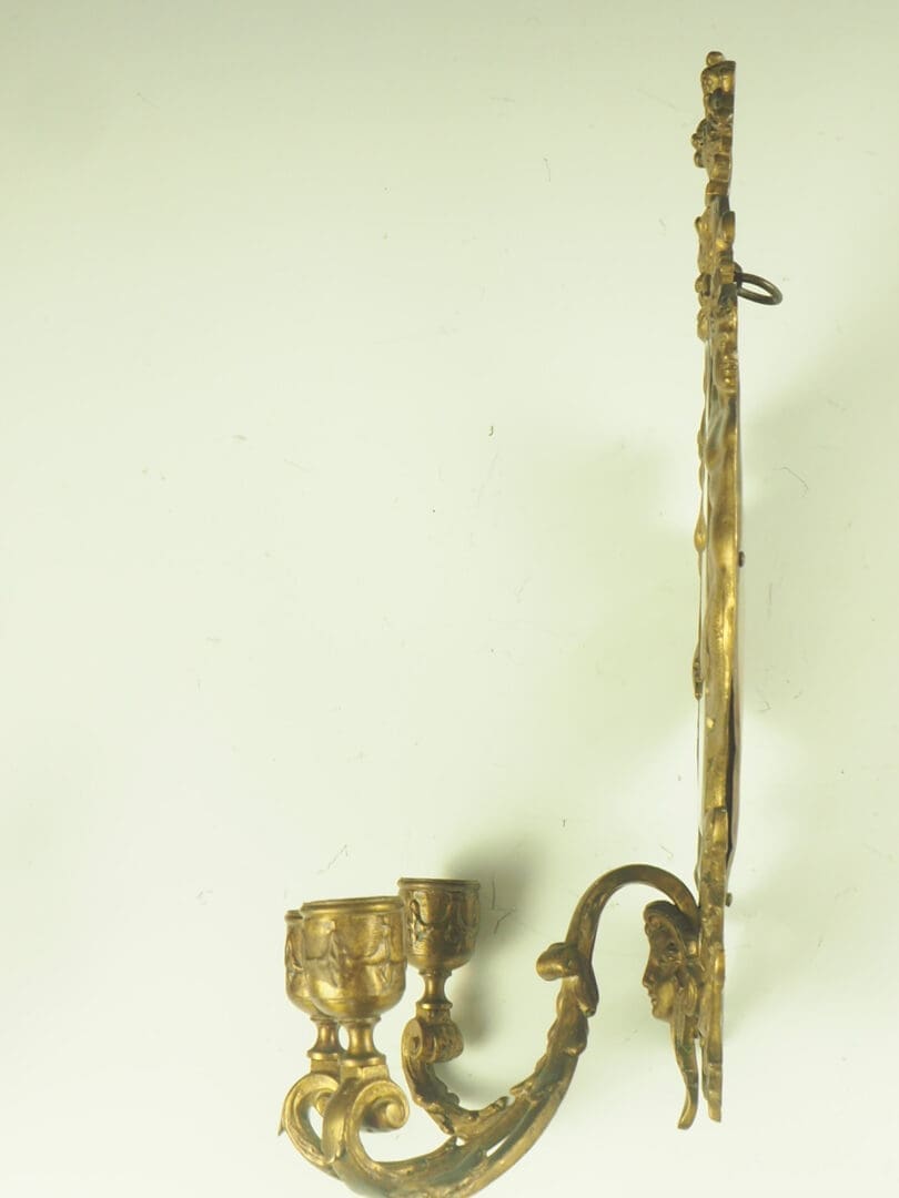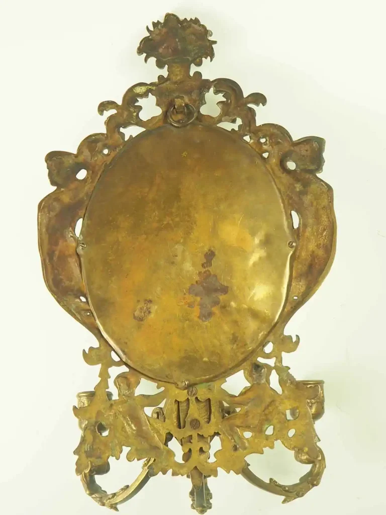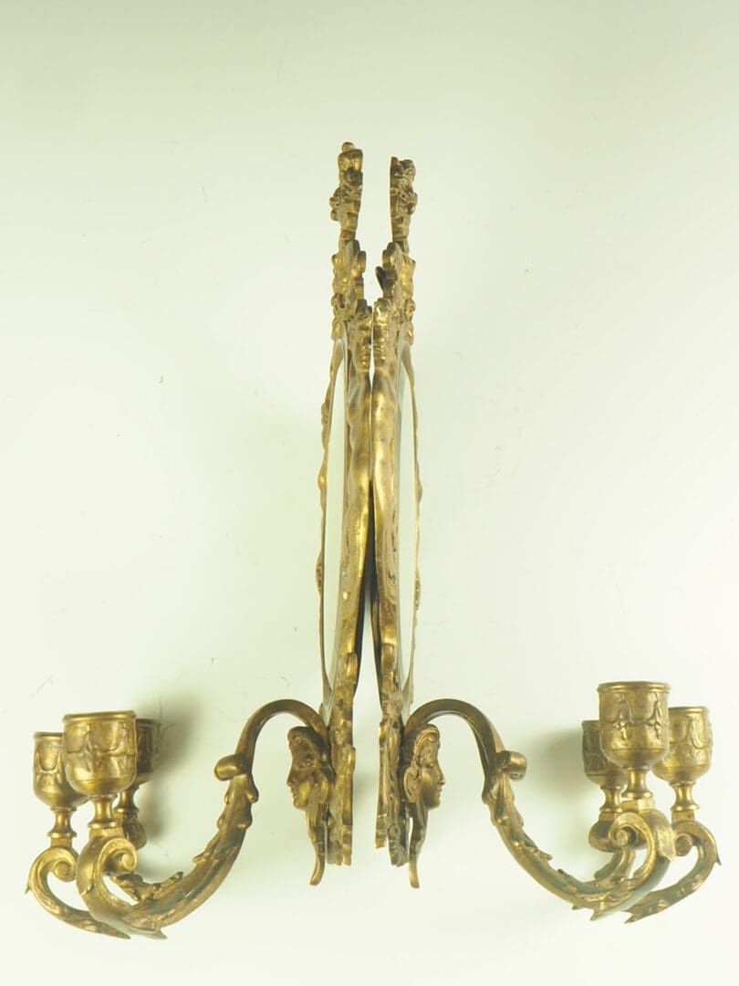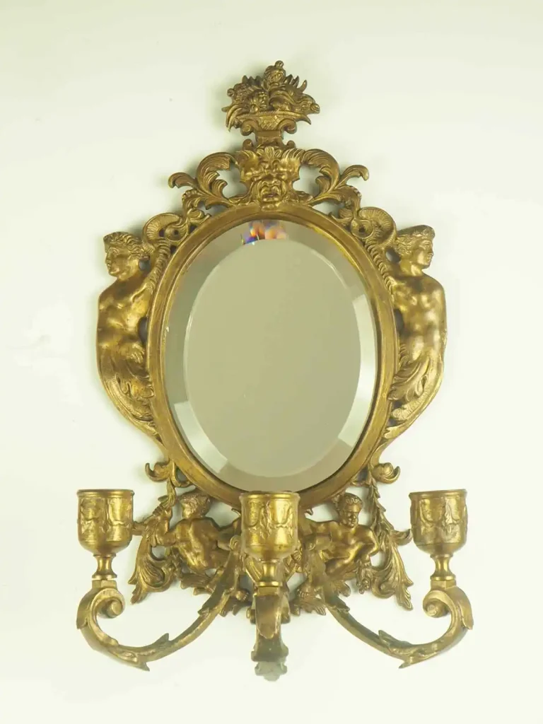 Very beautiful brass 19th Century Italian mirrored wall sconces in original condition with three arm candles.
