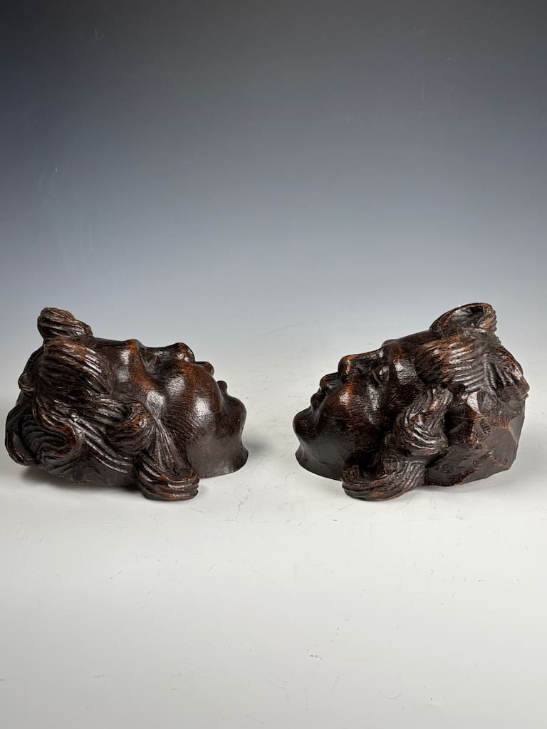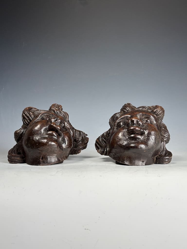 Pair of 18th Century Flemish Carved Wooden Cherub (Putto) Heads