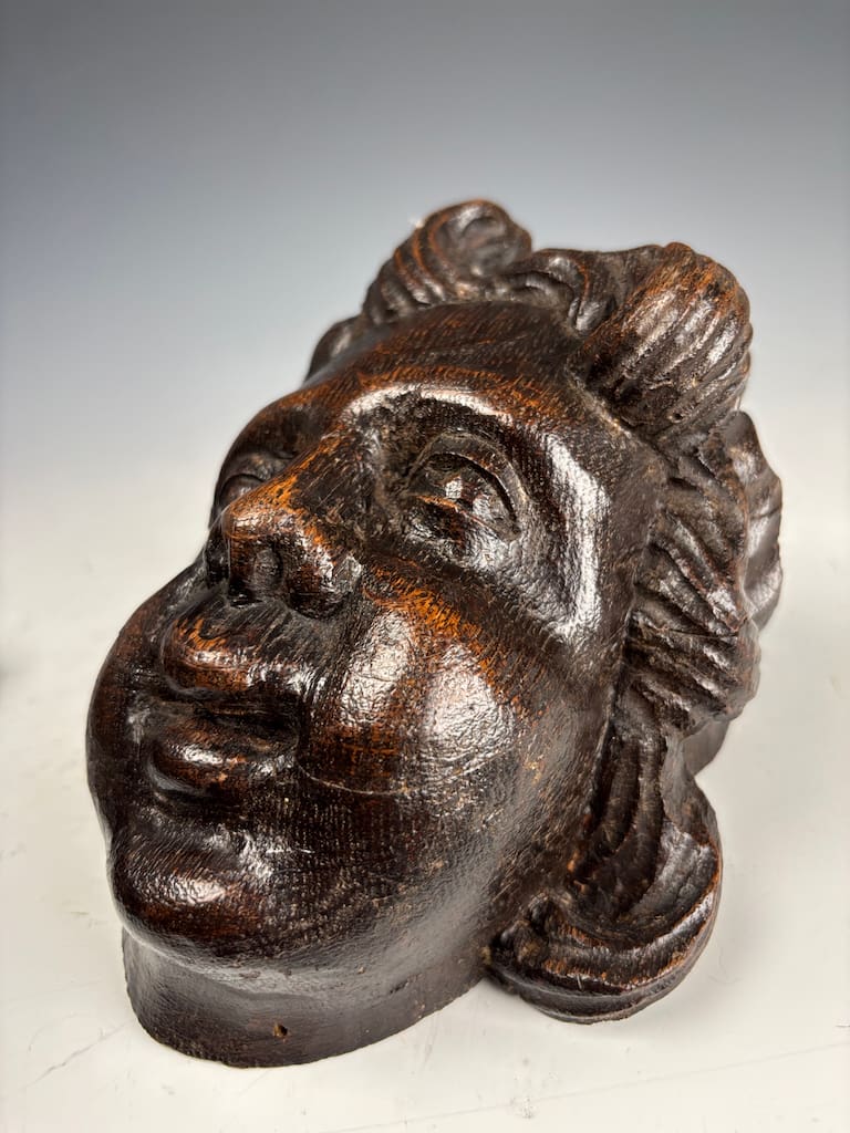 Flanders, during the 17th and 18th centuries, was a hub of religious art production, and its woodcarvers were renowned for their lifelike rendering and emotional subtlety. These two heads embody that tradition, with softly modeled features, flowing hair, and a sense of serene presence.