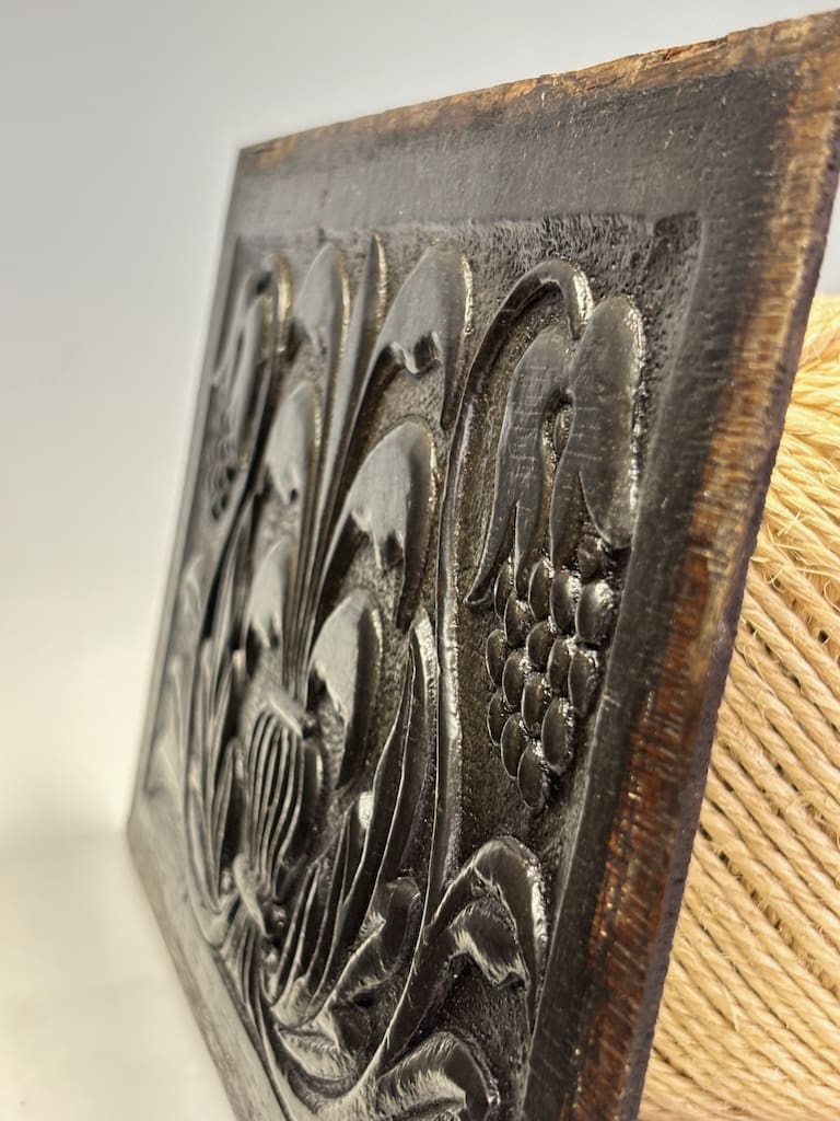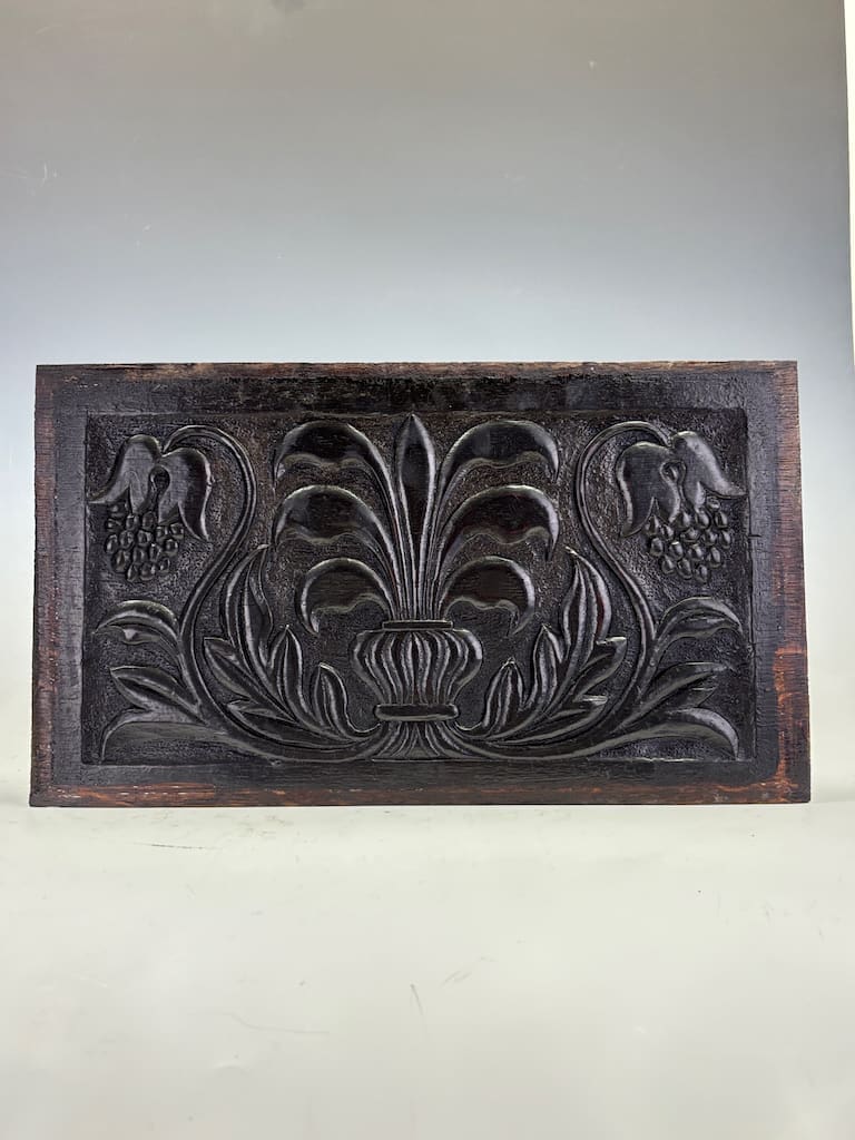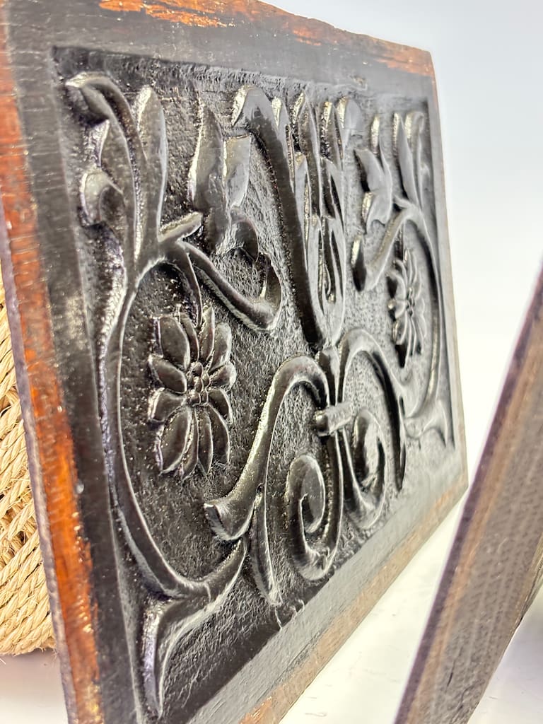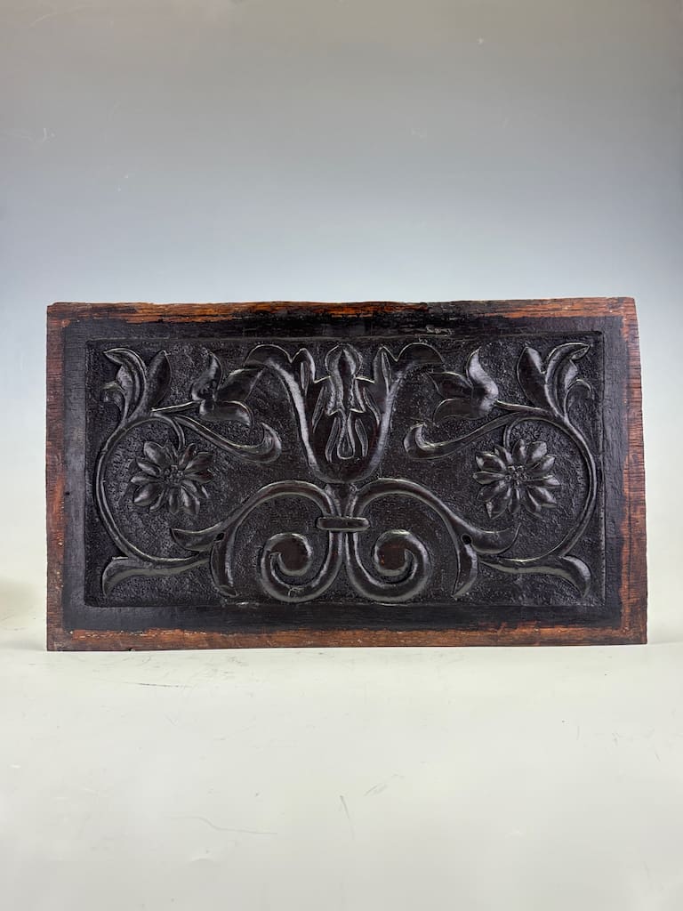 These panels were originally part of a larger piece of furniture, likely a coffer, cabinet, or a piece of wall panelling. It was a common practice during the 17th and 18th centuries for artisans to use highly decorative panels to elevate functional pieces, transforming them into works of art. The quality of the carving and the durable nature of the oak suggest they would have adorned a significant piece in the home of a wealthy family or merchant.