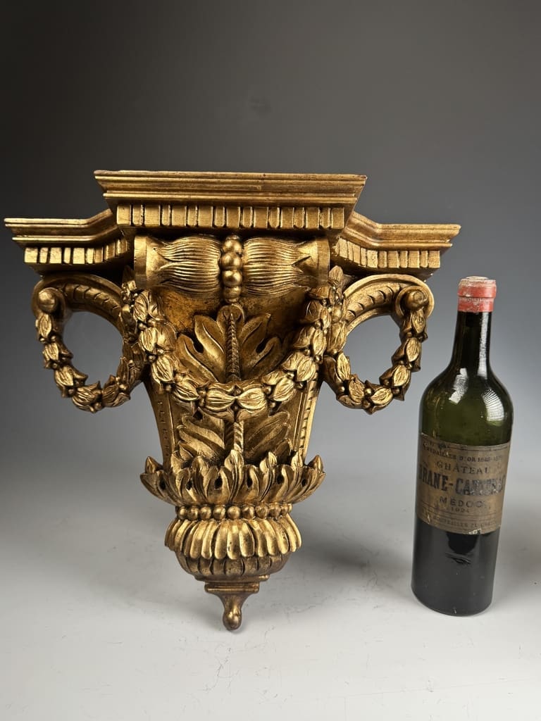 Such shelves were not merely functional, but also served as architectural ornamentation, often used in grand salons or boudoirs to support porcelain vases, clocks, or other objets d’art. Their design celebrates both French decorative arts and the 19th-century fascination with the grandeur of the Ancien Régime.