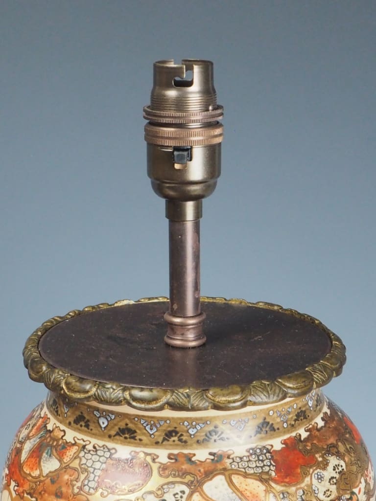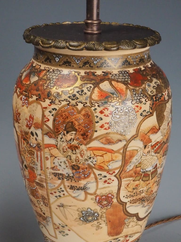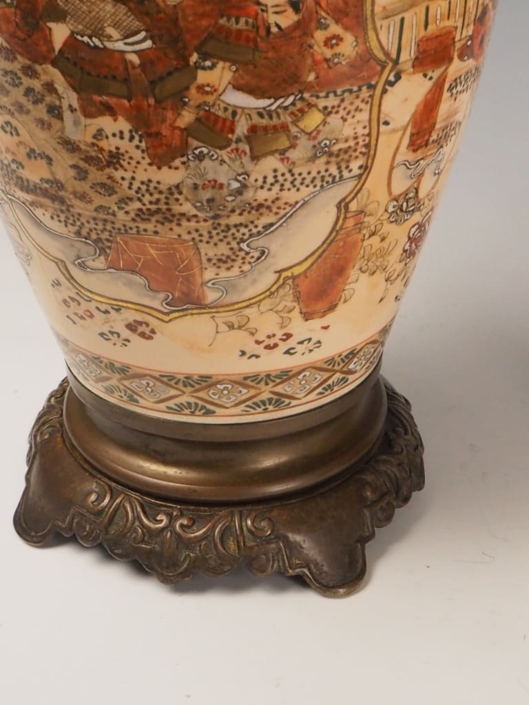 The style became synonymous with Japanese export art, displayed at international exhibitions and collected by European nobility. By the late 19th century, Satsuma vases were frequently adapted for use as oil lamps—particularly for Western markets—making this pair a fine example of cross-cultural craftsmanship during a time of heightened East–West artistic exchange.