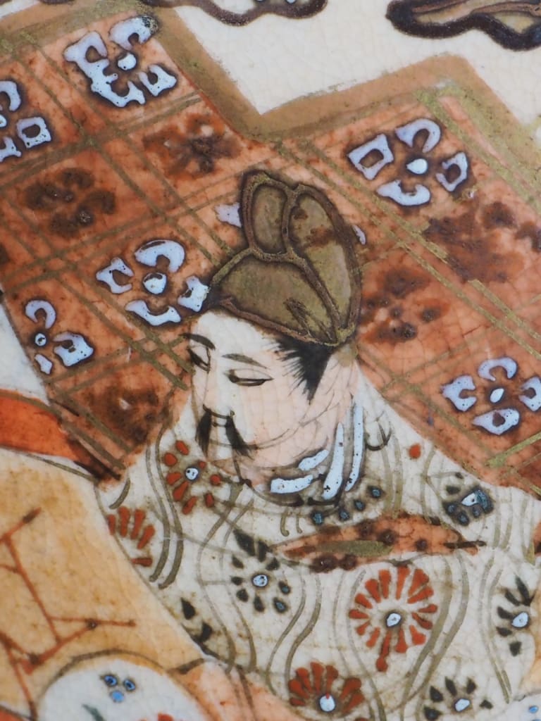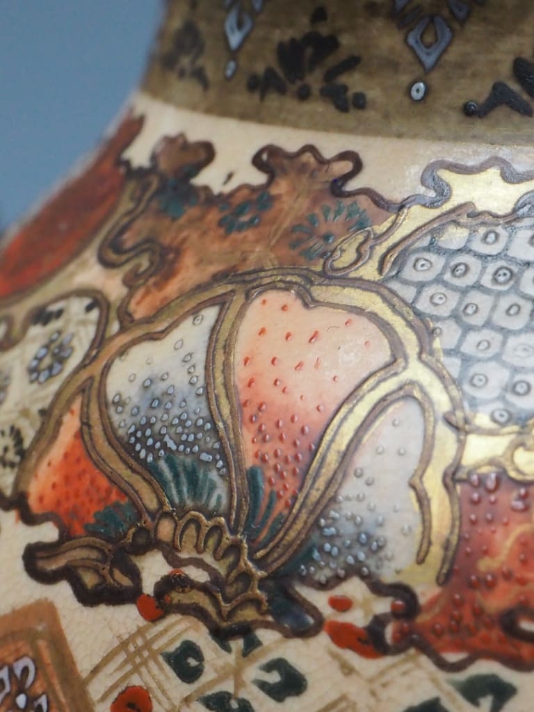Rich enamelling and soft earthy tones typical of Satsuma porcelain