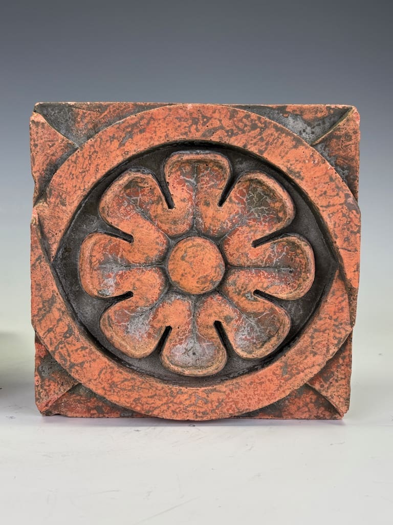“These terracotta moulds embody the enduring tradition of architectural ornamentation. The fleur-de-lis, emblematic of power and devotion, and the rosette, a symbol of timeless natural beauty, together offer both historical resonance and decorative sophistication. Fine fragments such as these bring museum-quality character into the domestic sphere.”