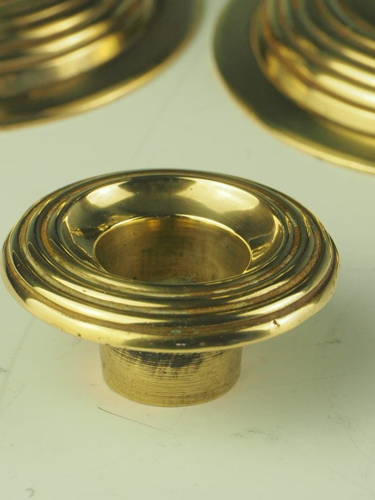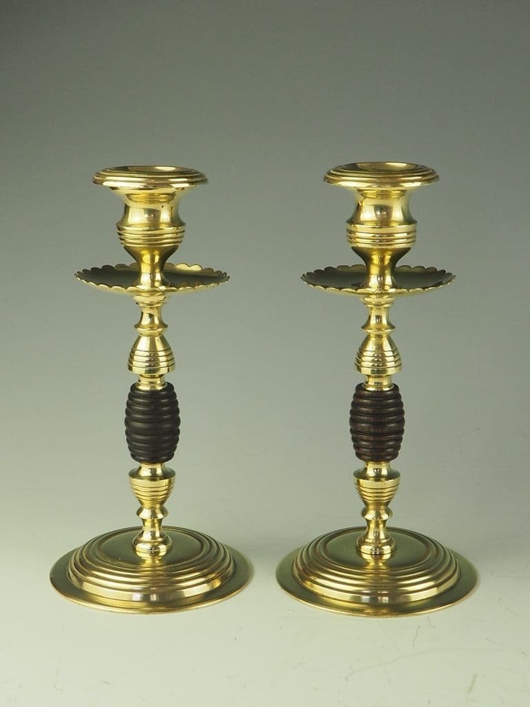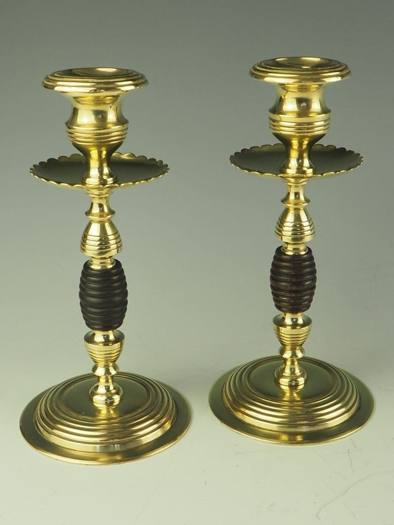 Indulge in the beauty and elegance of these Arts and Crafts Beehive Brass and Turned Wood Candle Holders, and let their timeless design and exceptional quality enhance the aesthetic appeal of your home.