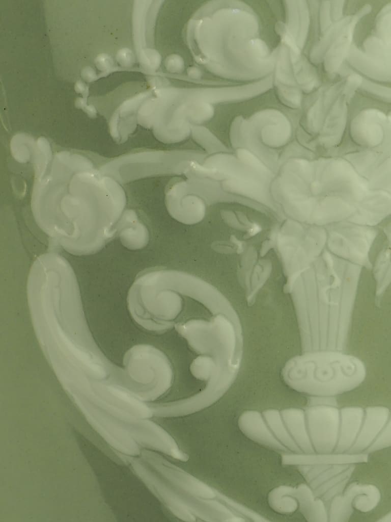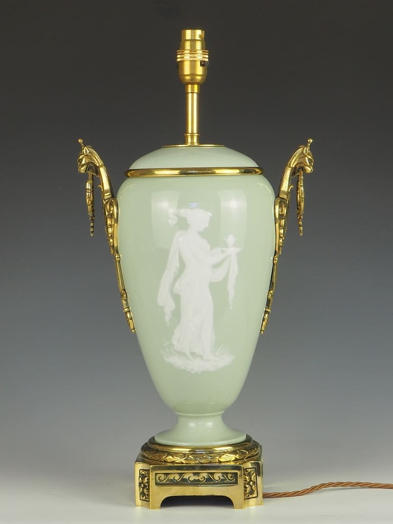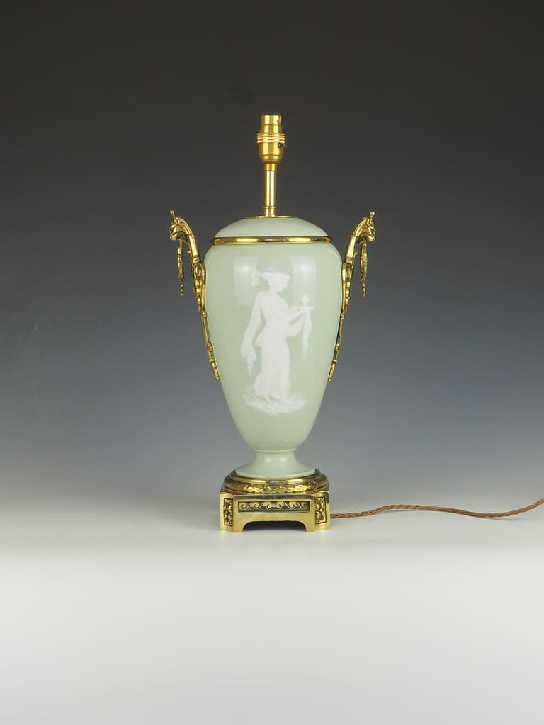 Antique Neoclassical Celadon Porcelain and Pate-Sur-Pate Table Lamp