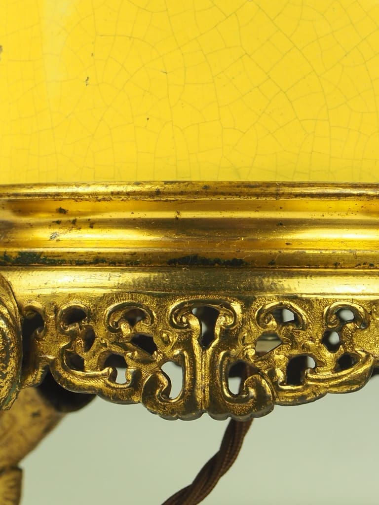 With its rich history and exquisite craftsmanship, this Antique Porcelain and Gilt Bronze Vase Table Lamp is not only a functional lighting fixture but also a work of art. Its unique combination of materials, intricate designs, and attention to detail make it a truly exceptional piece that will enhance the beauty and elegance. Whether placed on a side table, console, or as a centerpiece, this lamp is sure to add a touch of timeless beauty and sophistication to your home.