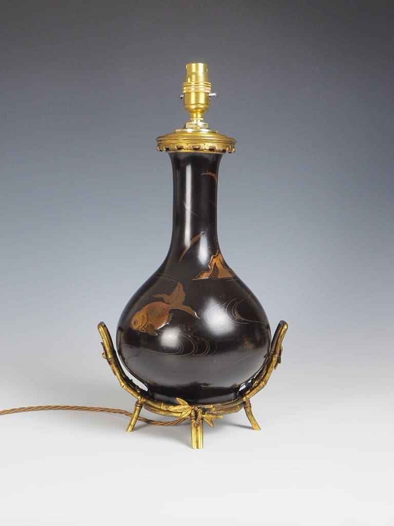 Antique Japanese Laquered Porcelain Table Lamp