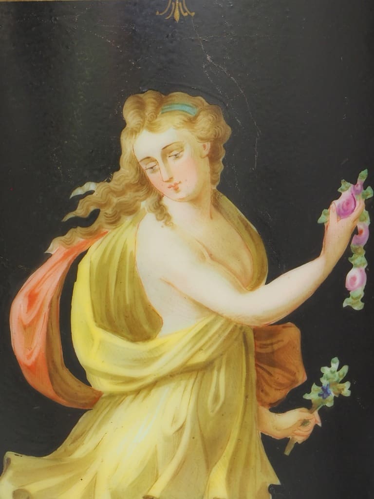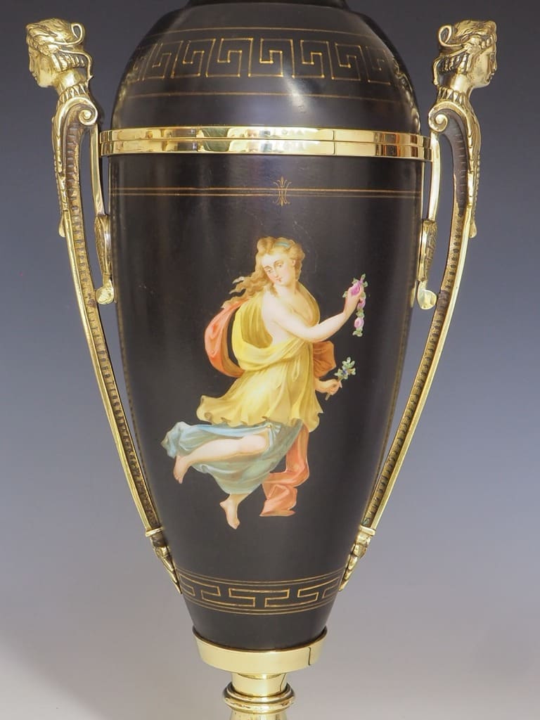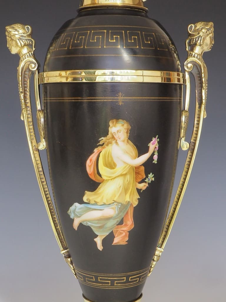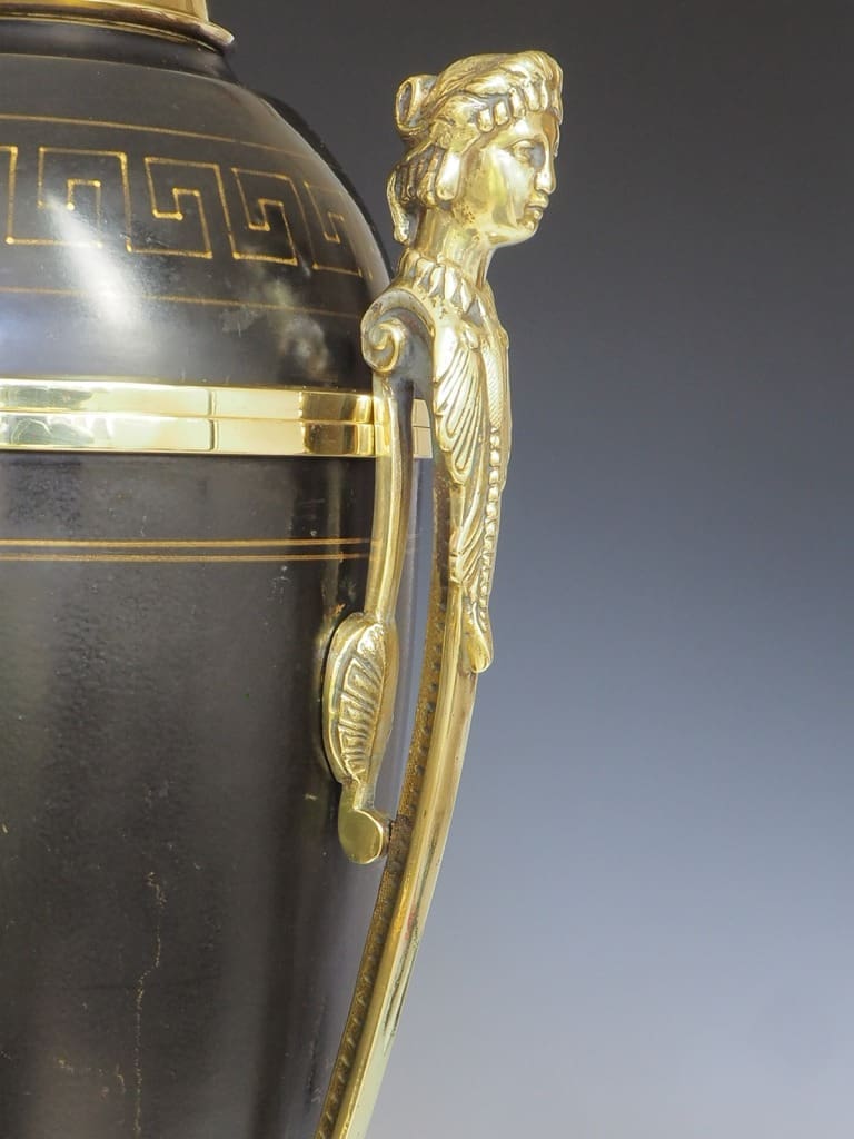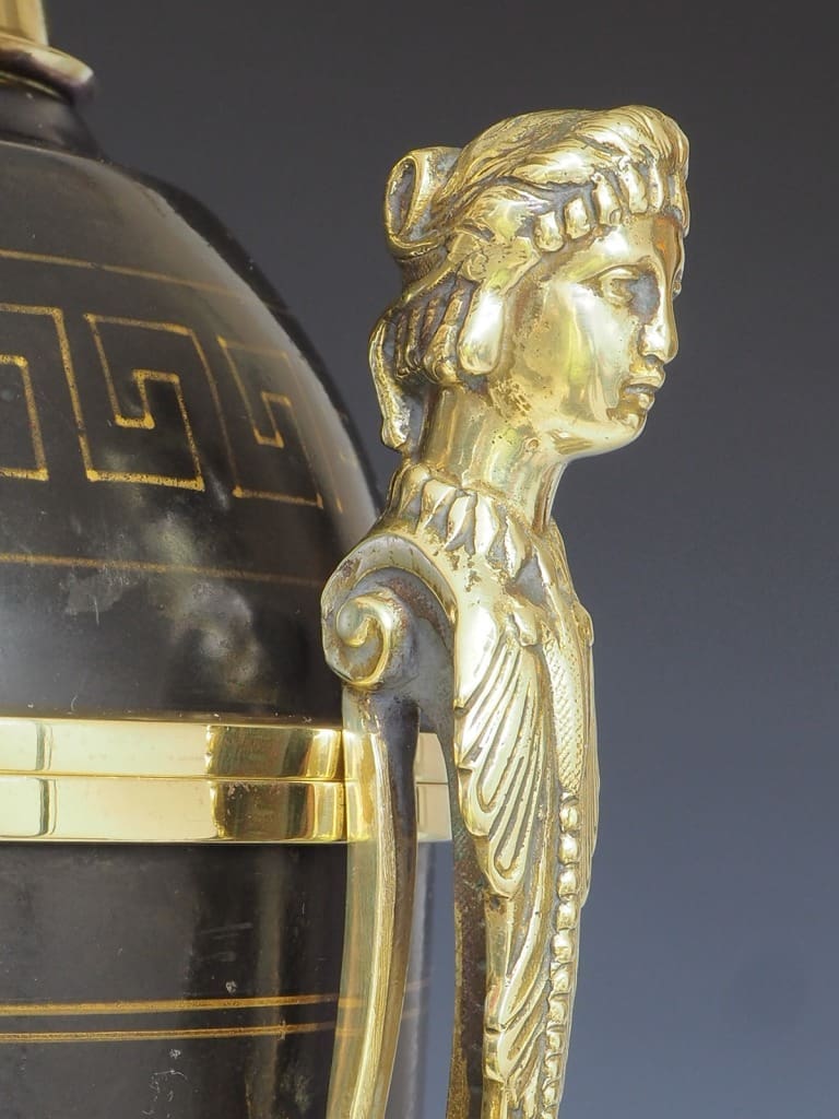 Each side of the lamp showcases a Greek goddess handle, adding a touch of timeless beauty.