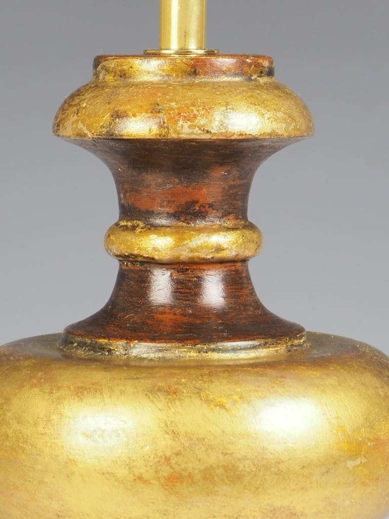Crafted with meticulous attention to detail, this lamp features a beautiful and unique solid carved gold and red gilt-wood base, which adds a touch of elegance to any home.