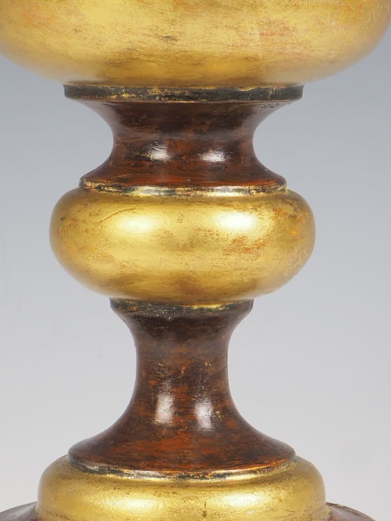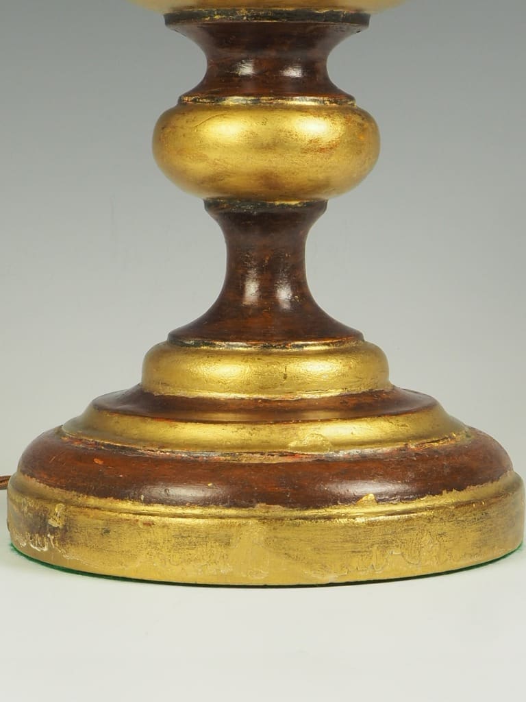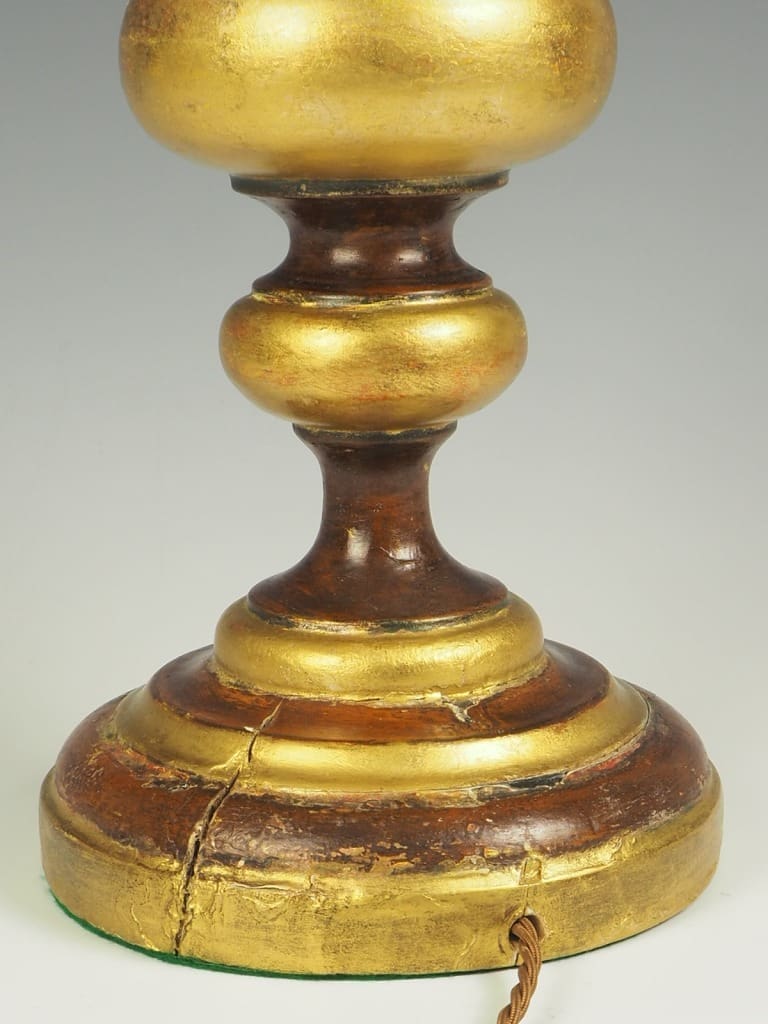 Antique Italian 19th Century Polychrome Gilded and Gesso Painted Carved Wood Table Lamp is a truly remarkable piece that showcases exquisite Italian design.