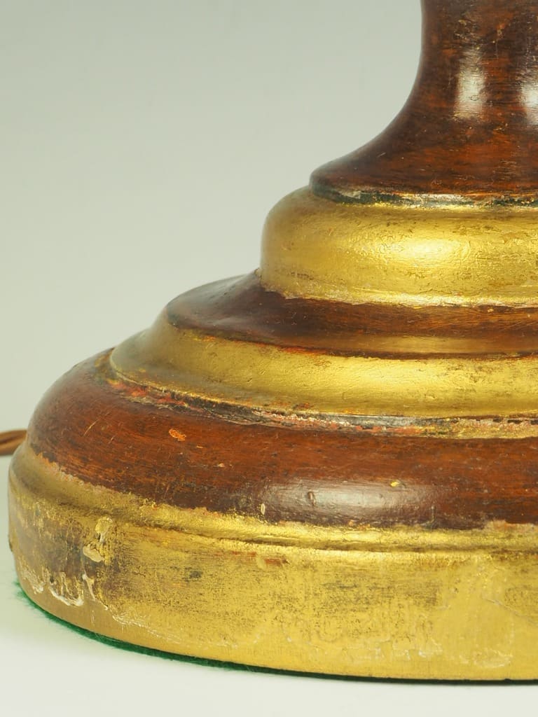 Whether you are looking for a functional lighting solution or a decorative accent for your space, this beautifully cleaned and rewired lamp is the perfect choice. Its excellent working condition, along with the attention to detail in the rewiring process, ensures that you will enjoy reliable and safe illumination. Moreover, the split in the wood on the base adds a unique touch that sets this lamp apart from others, making it a standout piece in any room.