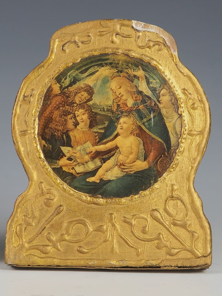 Constructed from gilt wood mounted on metal stands, these bookends are designed to provide both durability and elegance. The combination of materials ensures that they not only support your books but also withstand the test of time, making them a worthwhile addition to your home or office decor. Whether you are an avid reader, a collector of art, or simply someone who appreciates the beauty of vintage items, these Florentine bookends will serve as a perfect accent, bringing a sense of history and style to your space.