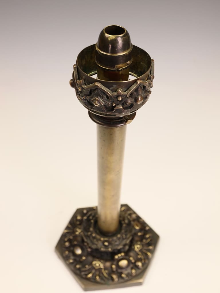 "Finding a Palmer & Co piece with this level of casting crispness is a delight for any serious collector of English metalwork. Most 'utility' brass of this age has been polished until the details are soft, but here, the scrolled foliage on the hexagonal base remains incredibly sharp. It is a 'rare' piece not just because of the maker's mark, but because of its architectural scale. It carries a gravitas that standard candlesticks simply lack—it’s a true piece of London’s industrial and social history."