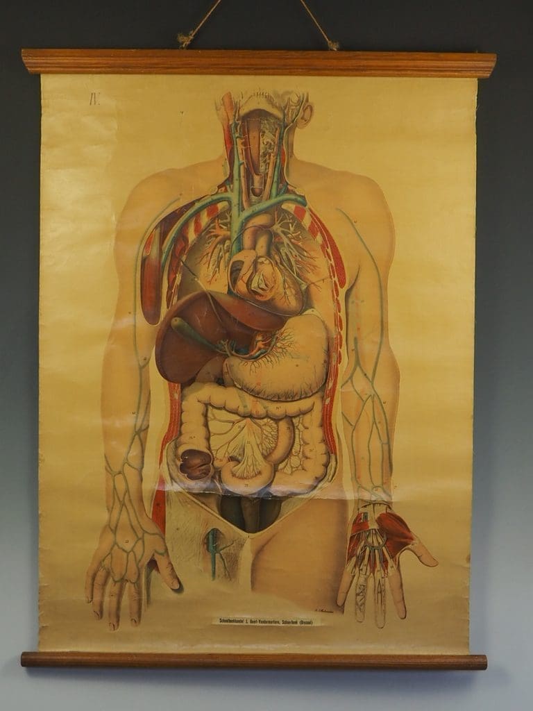 Antique Anatomical Chart (IV.) Human Anatomy Circulatory Signed by E. Hoelemann